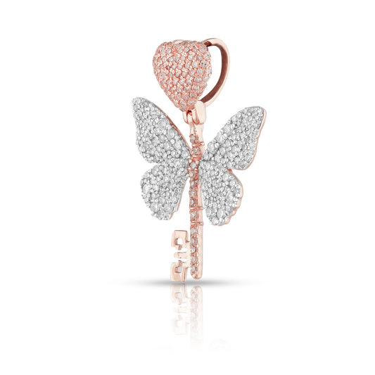 Butterfly Key Pendant in Rose Gold With Round White Diamond