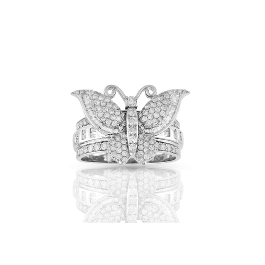 925 Silver Butterfly Ring with 3.36CT cz Round Diamond