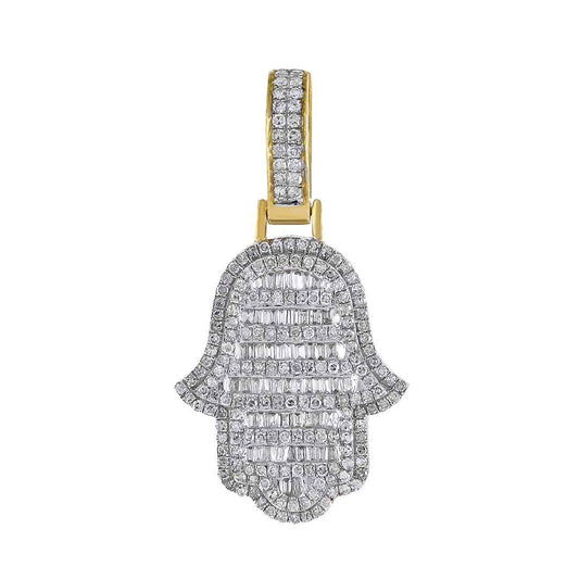14K Yellow Gold Baguette Diamond Hamsa Pendant
