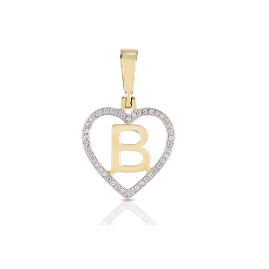 10KT Yellow Gold Diamond Heart Initial Letter Pendant