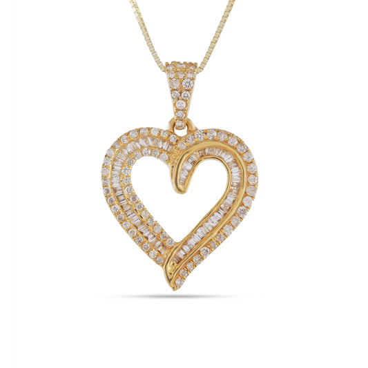 Yellow Gold Heart Pendant with 0.71CT Round & Baguette Diamond