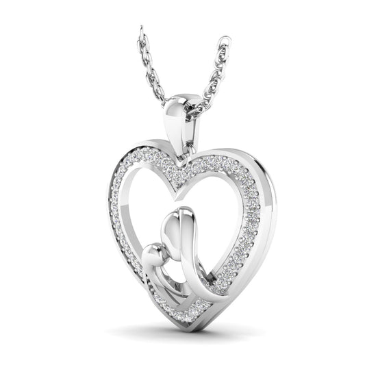 White Gold Mother and Child Heart Pendant Best for Mother's Day