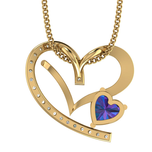 10KT Gold Open Heart Pendant with a Heart Shaped Color Stone Diamond