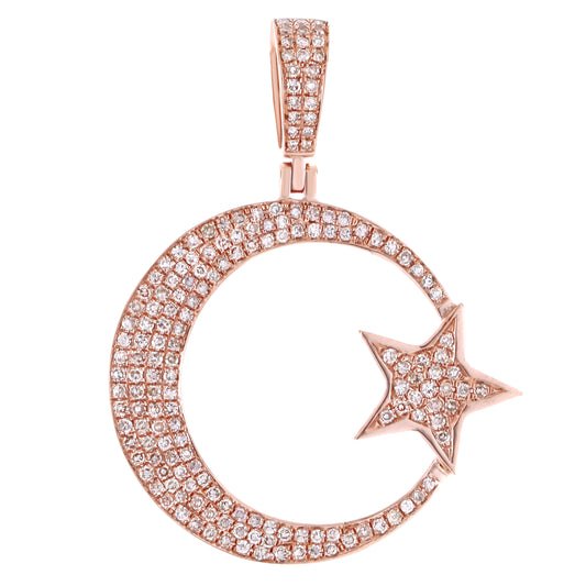 10KT Gold Star and Moon Pendant with 0.8CT Diamond