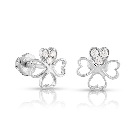 10KT Gold Heart Flower Earring with 0.15ct Diamond