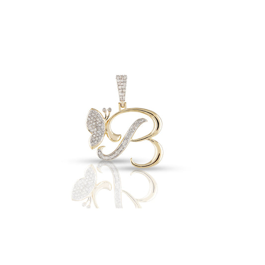 Yellow Gold A-Z Butterfly Initial Letter Pendant with 0.33CT Diamond