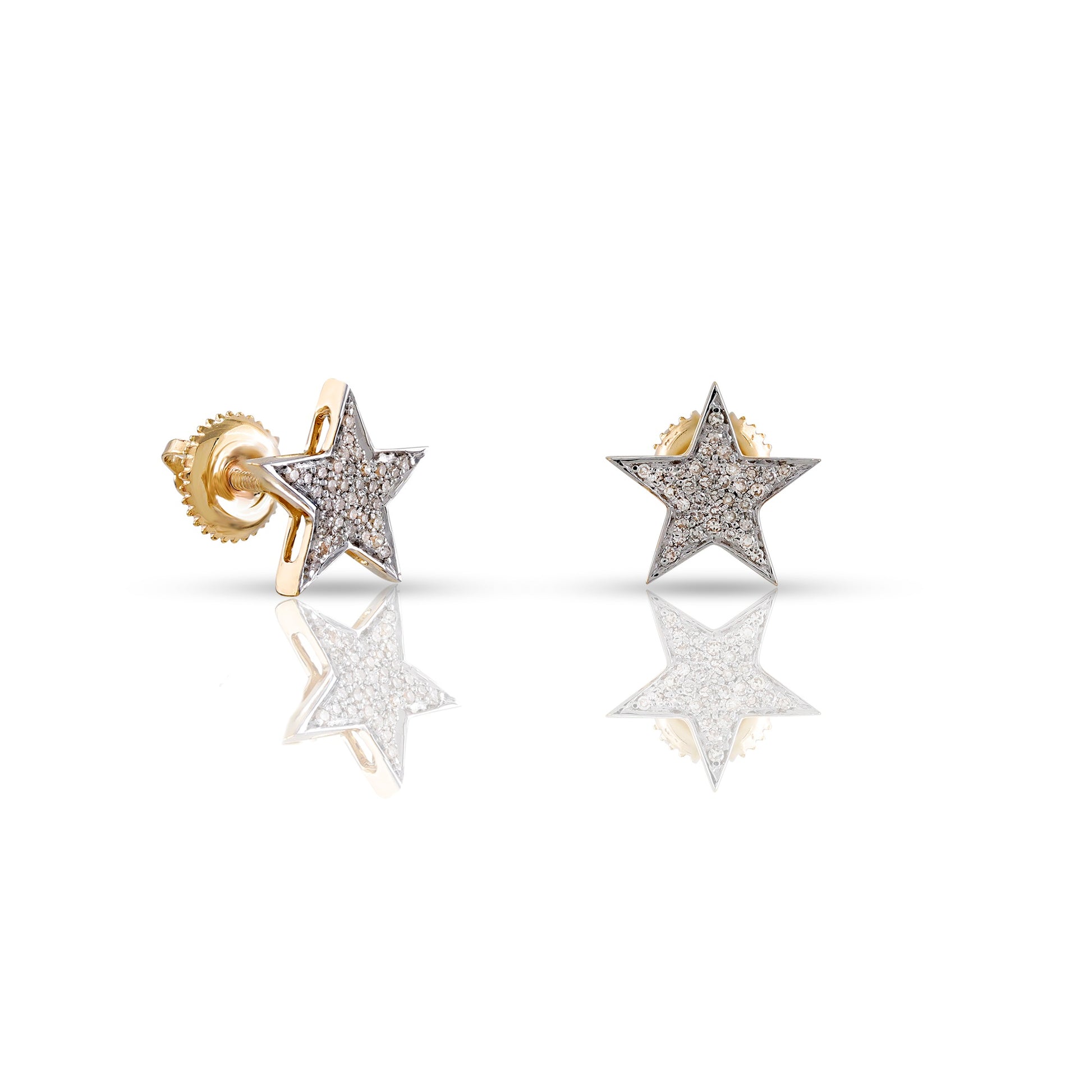 0.13ct Yellow Gold White Diamond Star Earrings by Truth Jewel