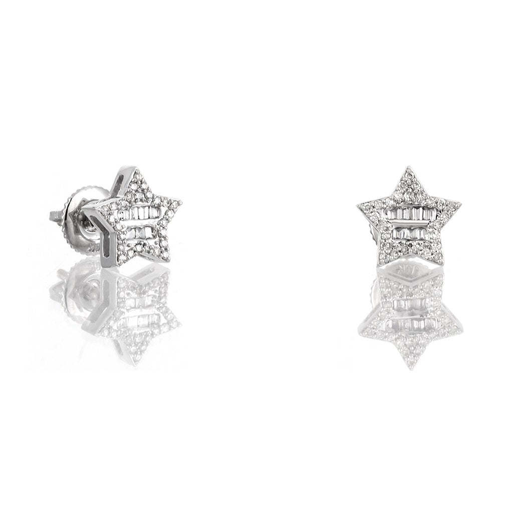 0.22ct White Gold Baguette Diamond Star Earrings by Truth Jewel