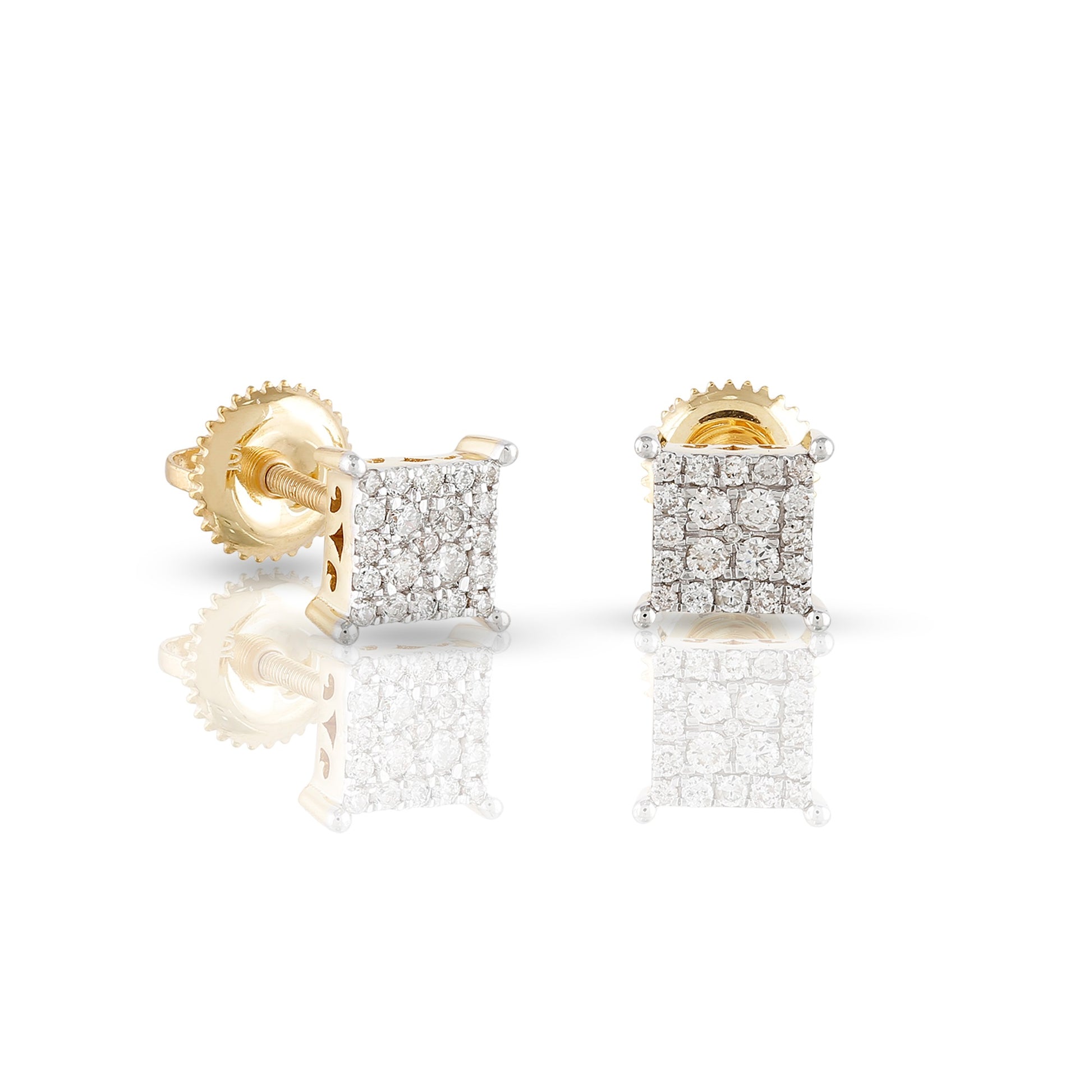 0.25ct Yellow Gold White Round Diamond Square Earrings by Truth Jewel