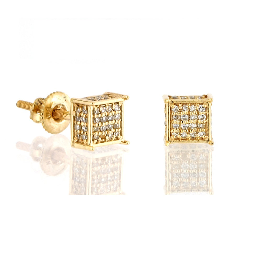 0.26ct Yellow Gold Round Diamond Square Earrings by Truth Jewel