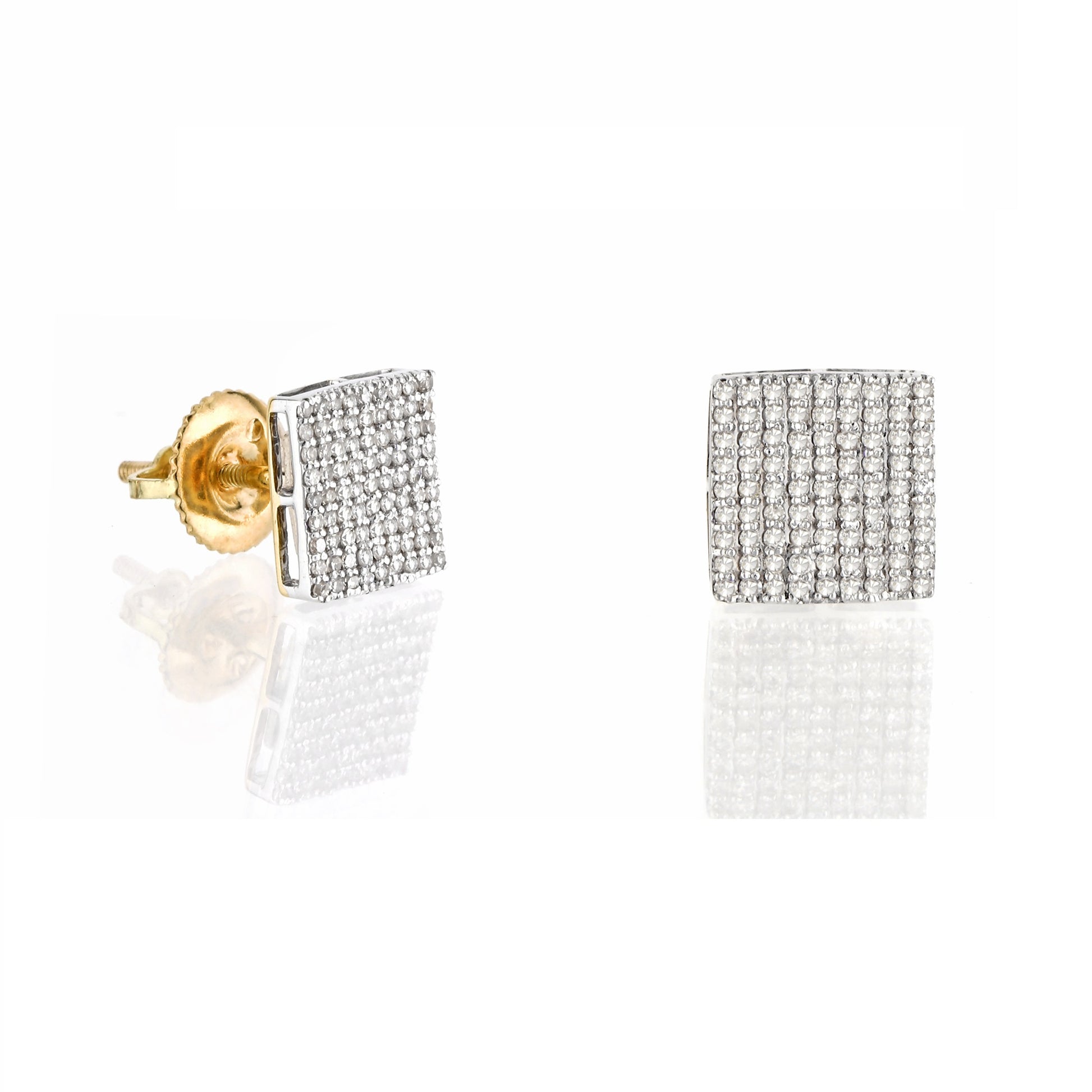 0.33ct Yellow Gold White Diamond Square Earrings by Truth Jewel
