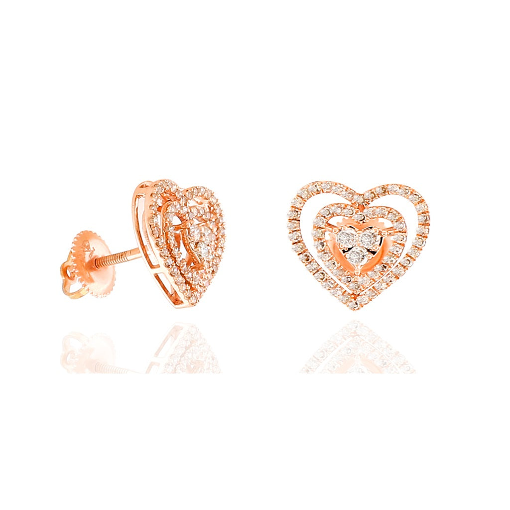 0.55ct Rose Gold Double Heart Stud Earrings by Truth Jewel