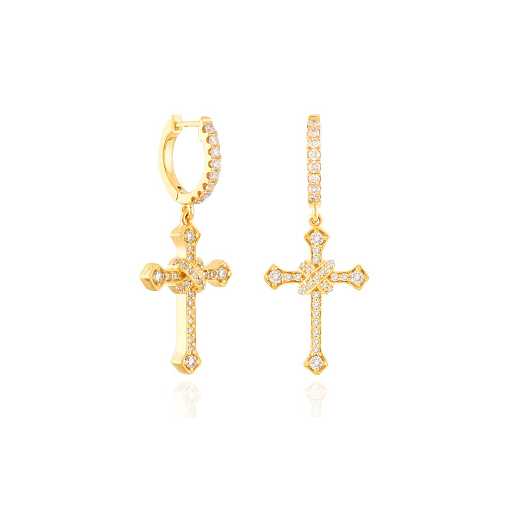 0.61ct Yellow Gold Cross Earrings by Truth Jewel