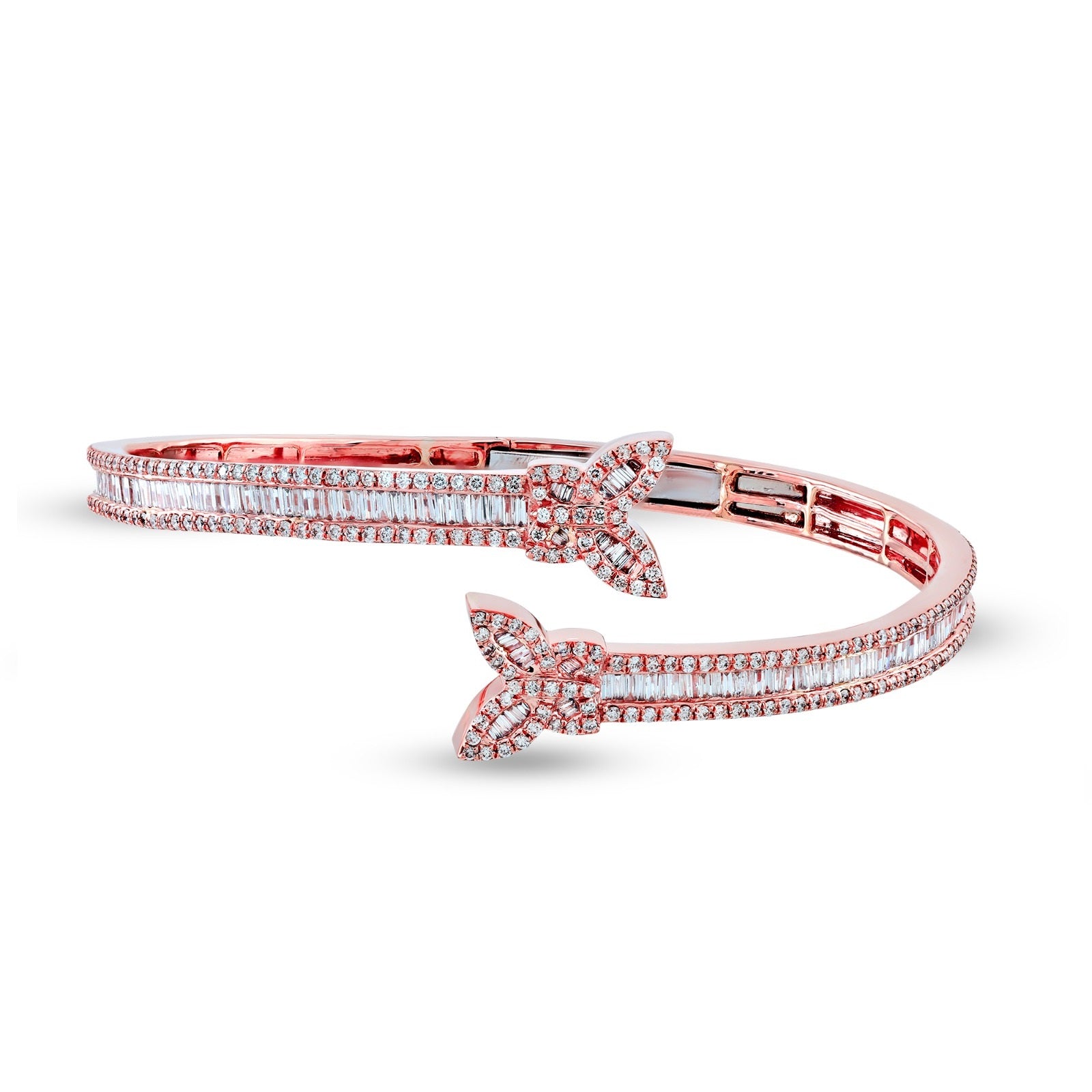 Choose this bracelet for its exquisite craftsmanship and unique design. The combination of baguette and round diamonds creates a stunning visual effect, while the rose gold adds warmth and elegance. Versatile enough for everyday wear or special occasions, this bracelet makes an ideal gift for loved ones or a delightful addition to your own collection.