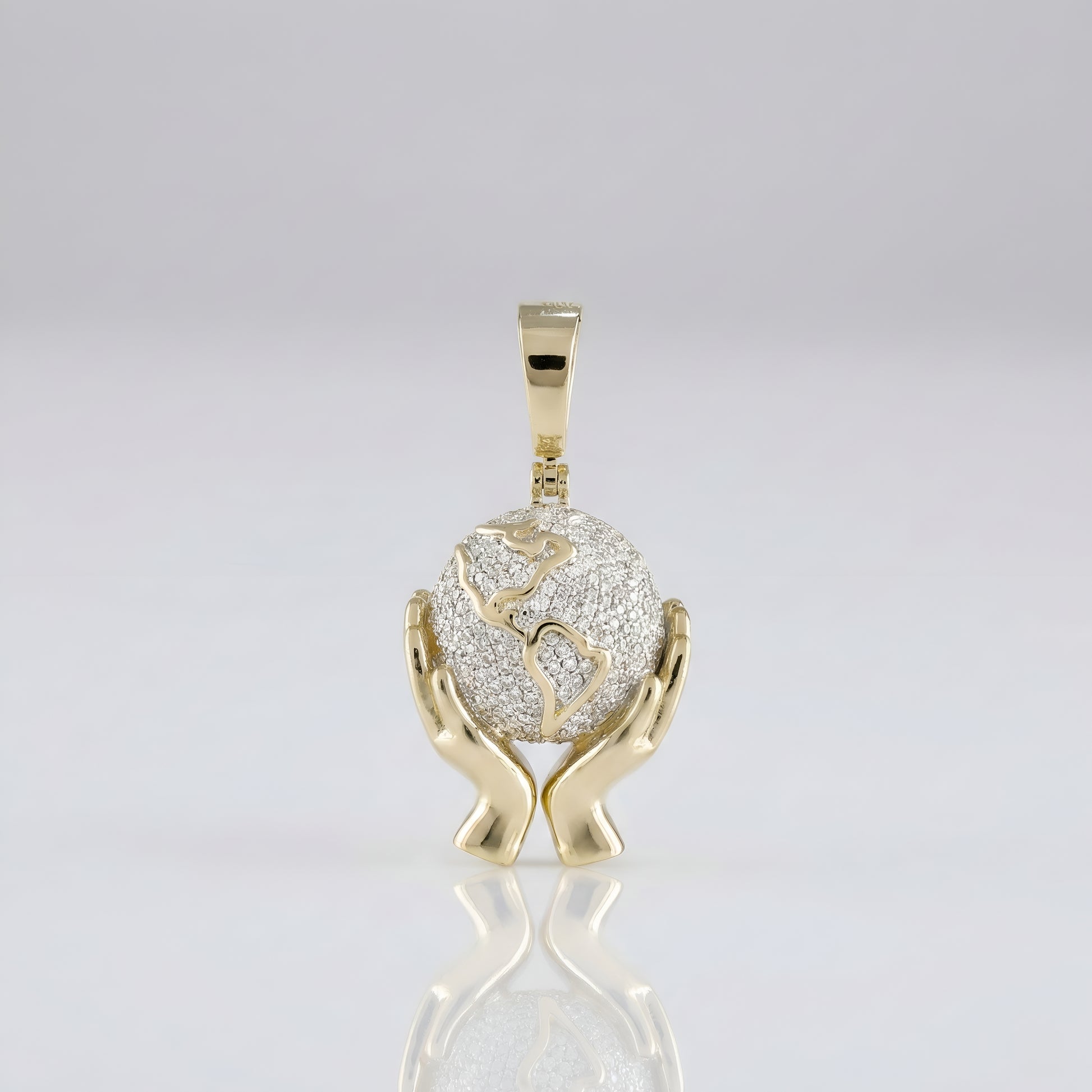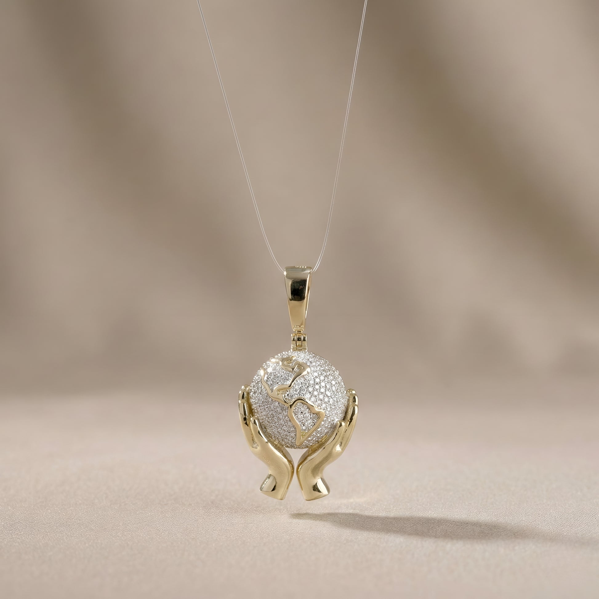 The Yellow Gold World in Your Hands Pendant is more than just a piece of jewelry; it's a symbol of elegance and meaning. The combination of high-quality VS-SI clarity, G-H color diamonds, and your choice of yellow gold or silver ensures a piece that is both beautiful and durable. The option for customization adds a personal touch, making it a perfect gift for a loved one or a special addition to your collection.
