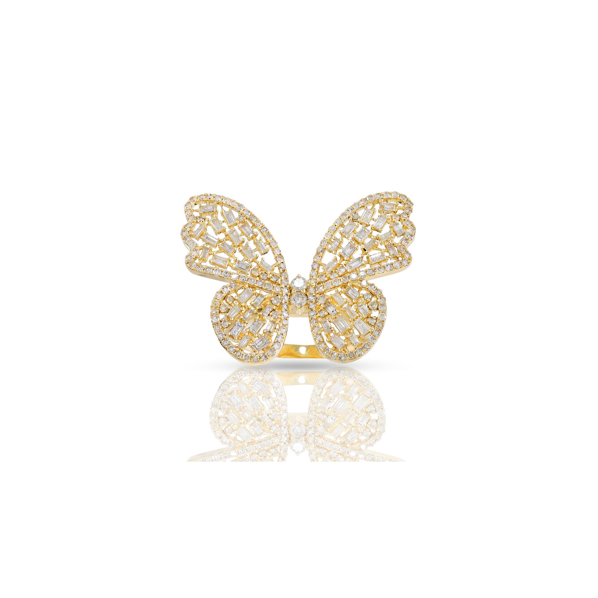 Choose this ring for its exceptional craftsmanship and unique design. The butterfly motif symbolizes transformation and beauty, while the dazzling diamonds enhance its brilliance. Made from durable 14K yellow gold, it ensures lasting quality. Ideal for gifts or personal keepsakes, this ring is a cherished expression of individuality and style, making it a standout piece in any collection.