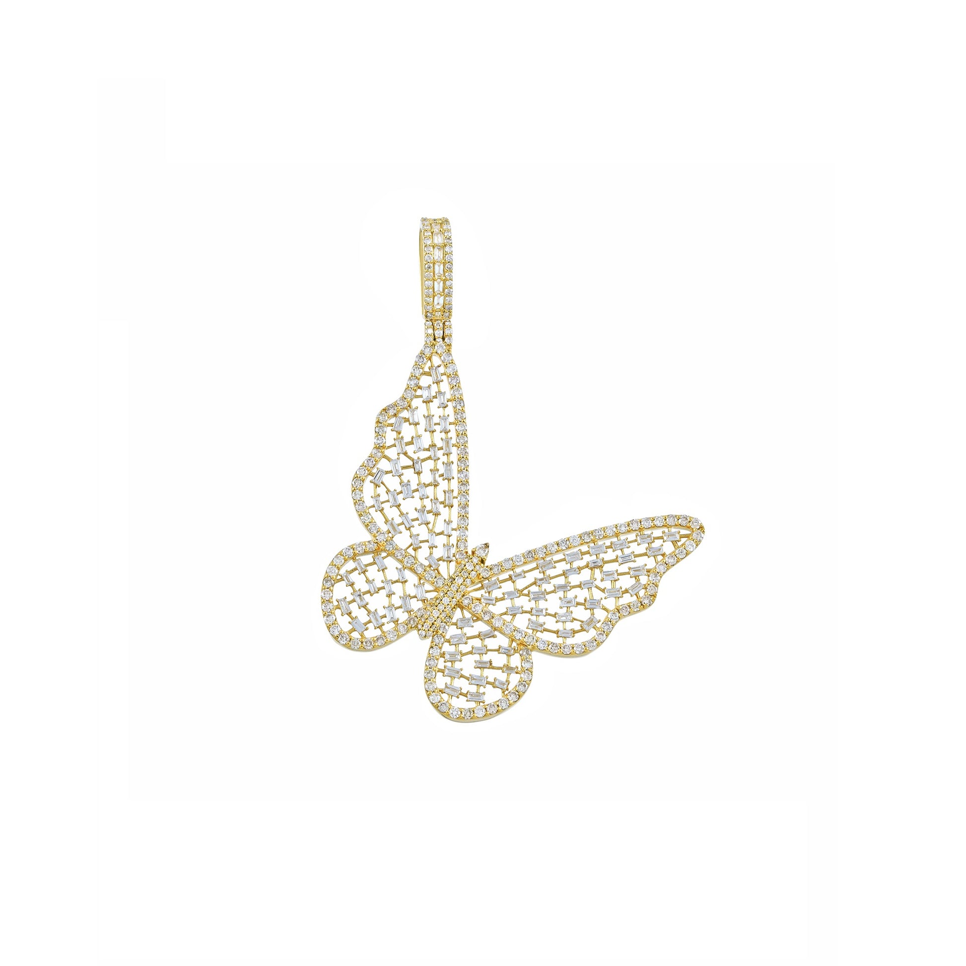 14K Yellow Gold Baguette Diamond Butterfly Pendant