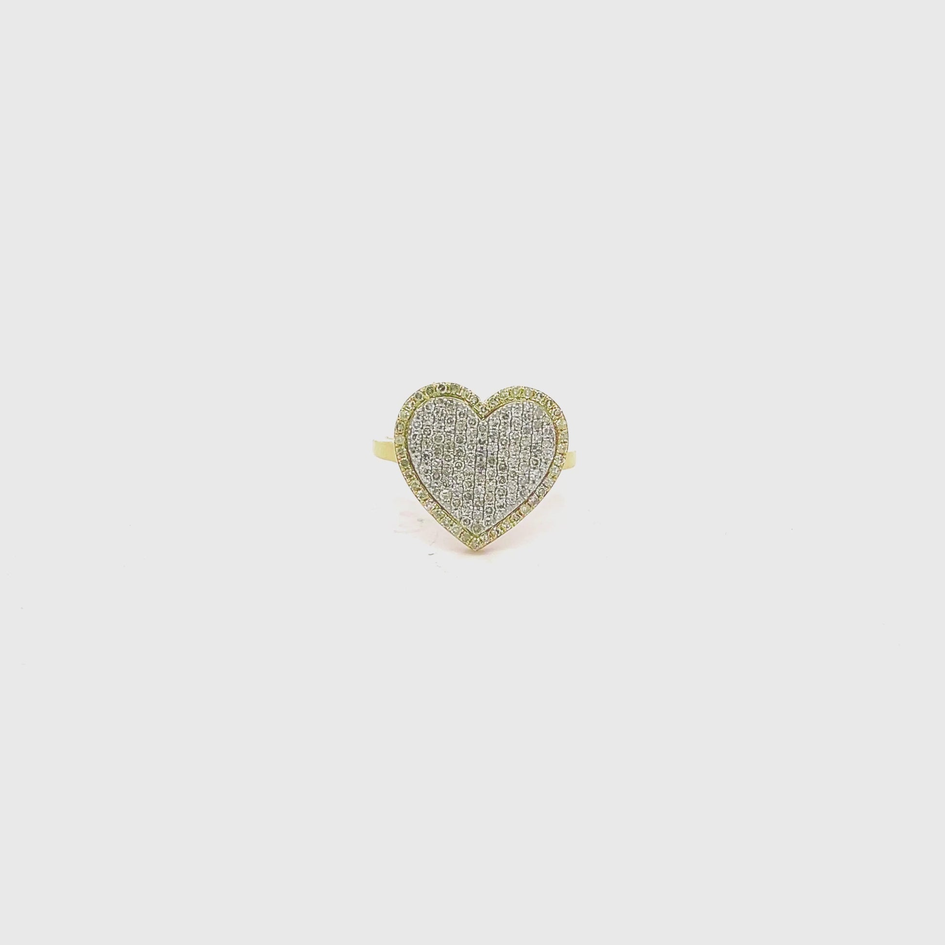 This exquisite 14K Yellow Gold Diamond Heart Ring showcases a captivating heart-shaped design adorned with brilliant diamonds. The warm, lustrous yellow-gold setting beautifully enhances the sparkle of the precious stones, creating a stunning visual effect. Meticulously crafted for both beauty and durability, this ring is a perfect symbol of love and elegance.