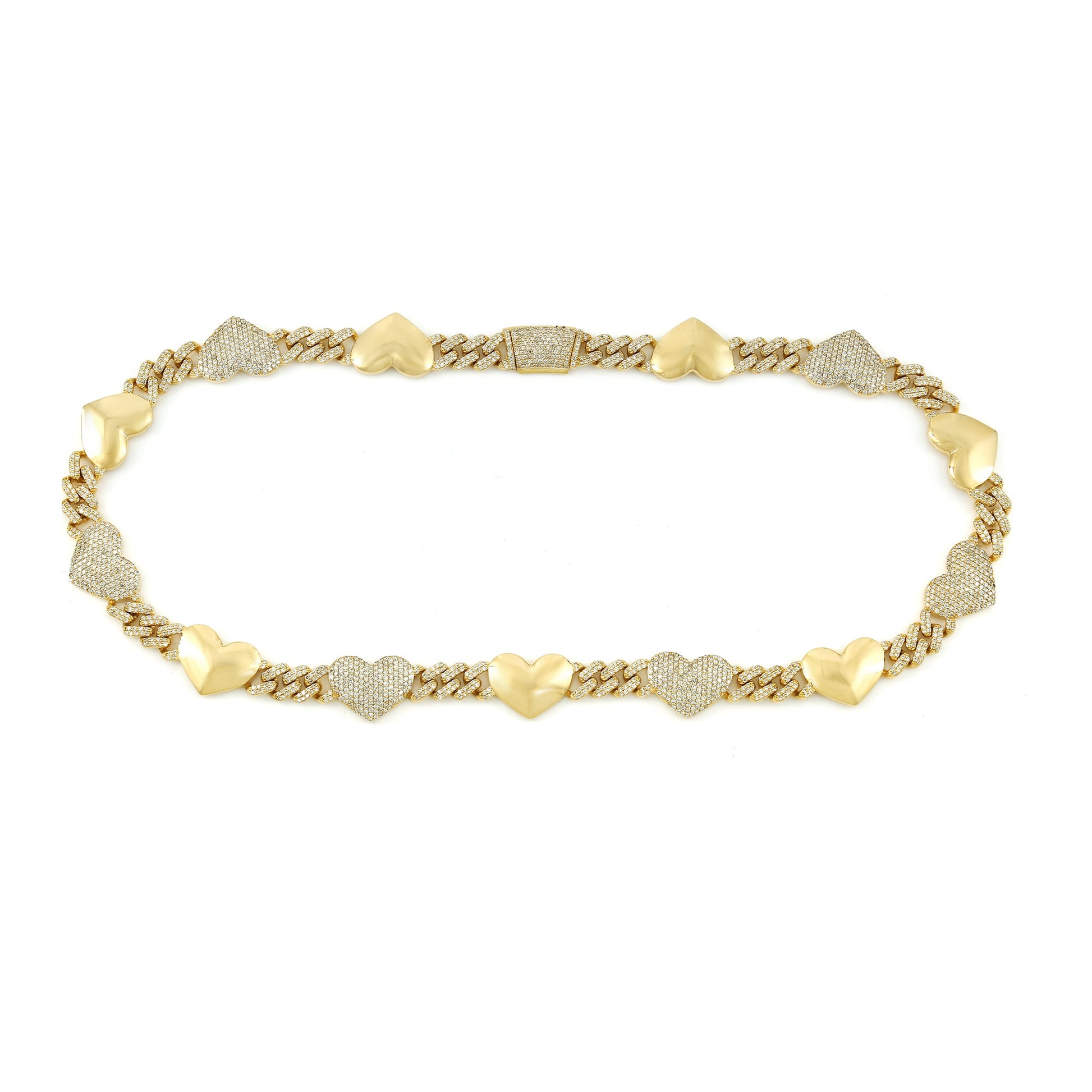Choose this chain for its romantic design, premium 14K gold build, and dazzling diamond detailing. The alternating heart pattern adds personality and charm, while the pavé stones deliver radiant sparkle. Built with a secure clasp and strong craftsmanship, it’s ideal for gifting, celebrating love, or treating yourself to a standout jewelry piece. It’s a unique, stylish, and elegant addition to any collection.