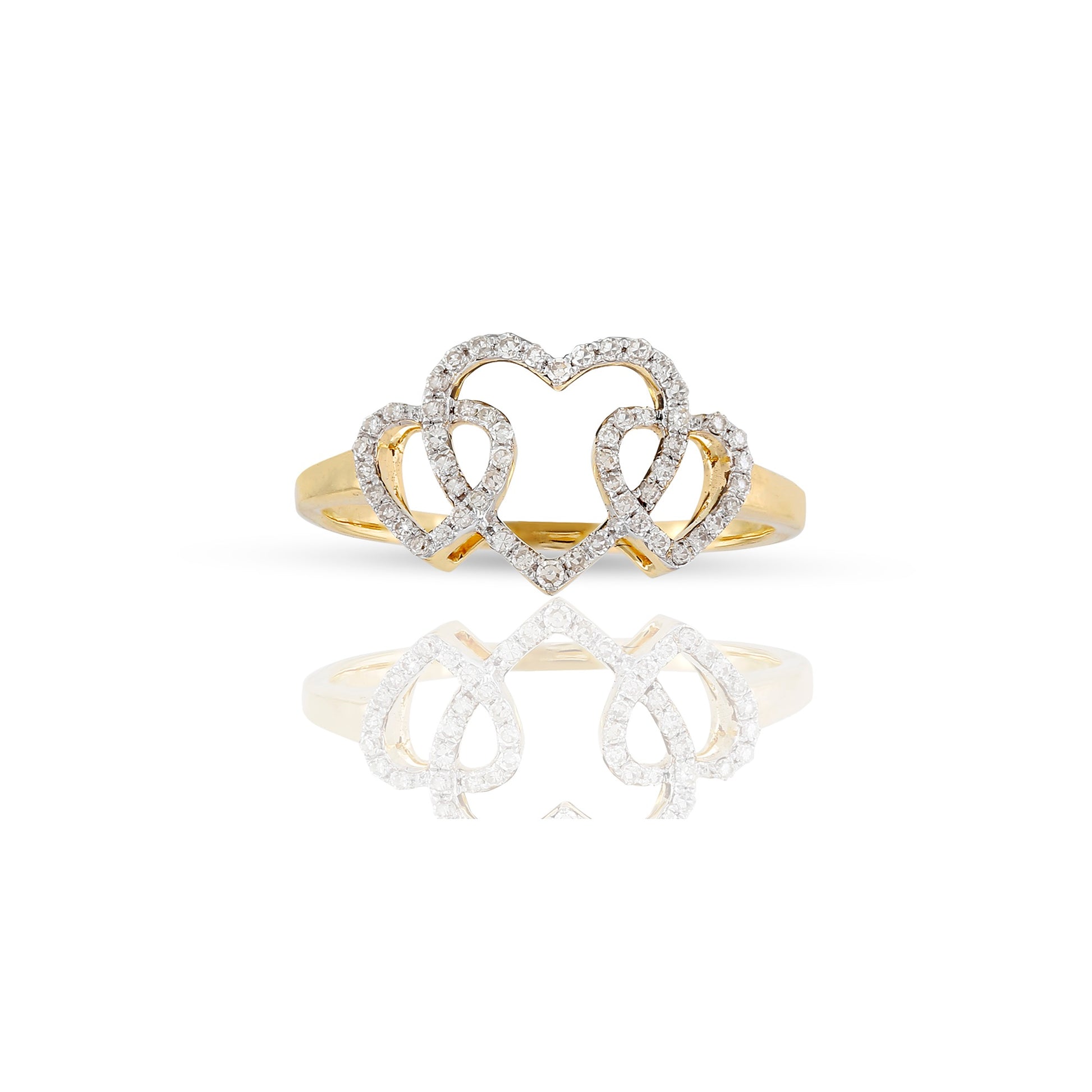 14K Yellow Gold Triple Heart Ring | Elegant Love Jewelry