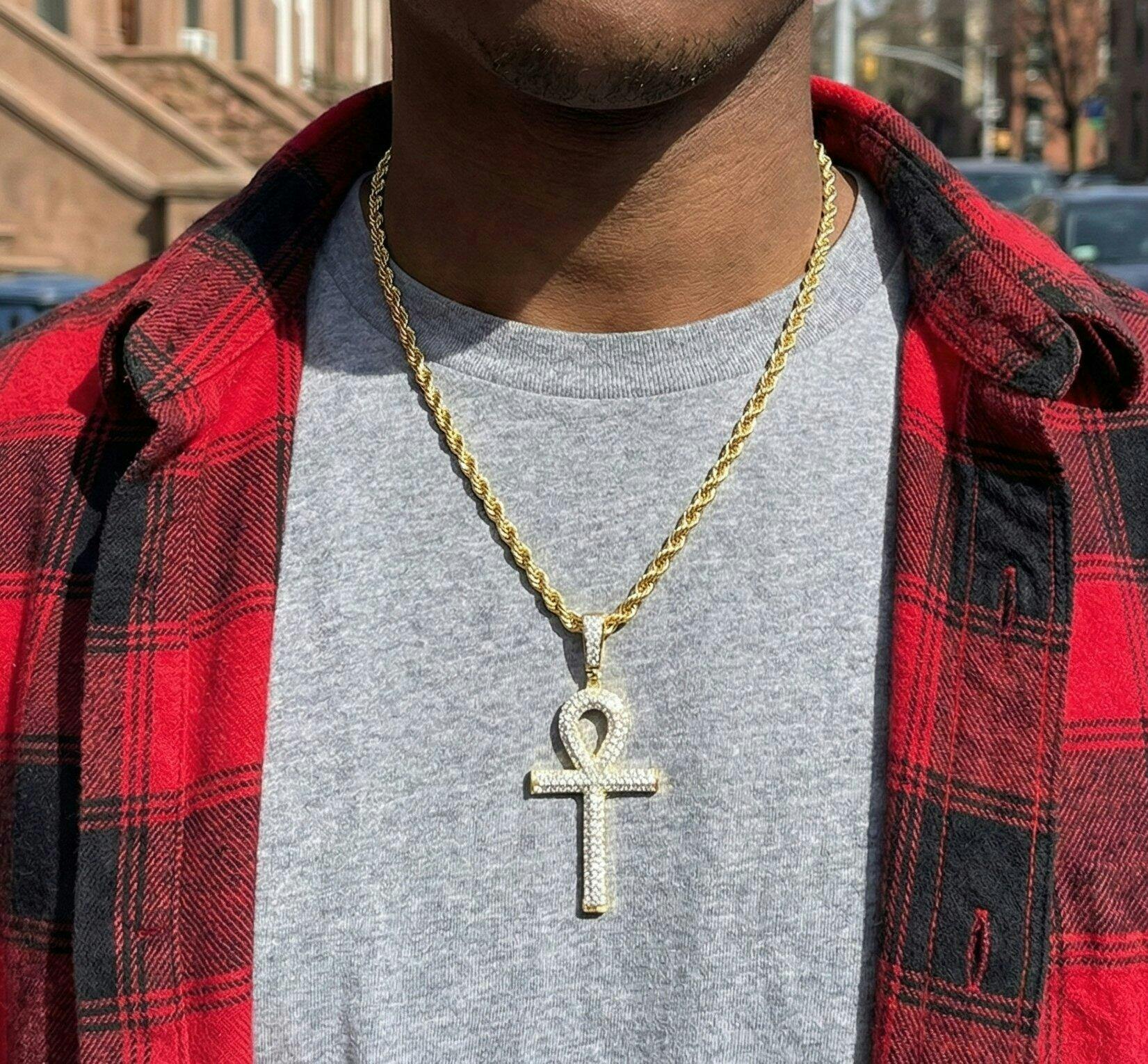 Elevate your style with the timeless elegance of the 3/4 Cts Round Diamond Ankh Pendant.