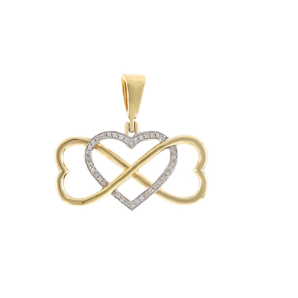 Embrace the beauty of eternal love with our Yellow Gold And 0.07ct Round Diamond Heart and Infinity Pendant. Crafted with intricate details and a perfect blend of round diamonds and golden warmth, this pendant symbolizes endless affection and timeless elegance. Whether for a special occasion or to elevate your everyday style, this pendant will remind you that love is forever, and your brilliance shines endlessly.