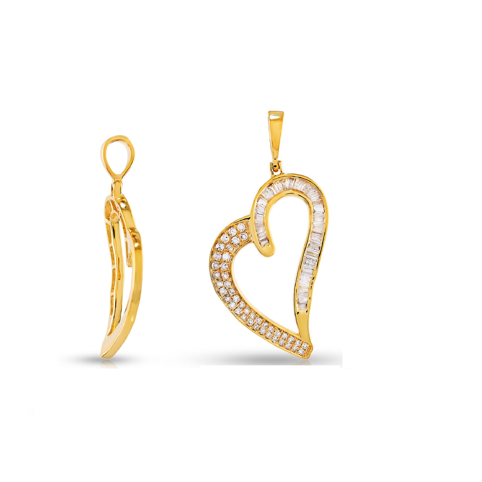 Add a touch of luxury to your day with our Yellow Gold Heart Pendant, adorned with dazzling 0.33ct round and baguette diamonds. Perfectly designed for those who seek beauty and sophistication in every detail, this pendant is more than just a piece of jewelry—it’s a celebration of love and brilliance.