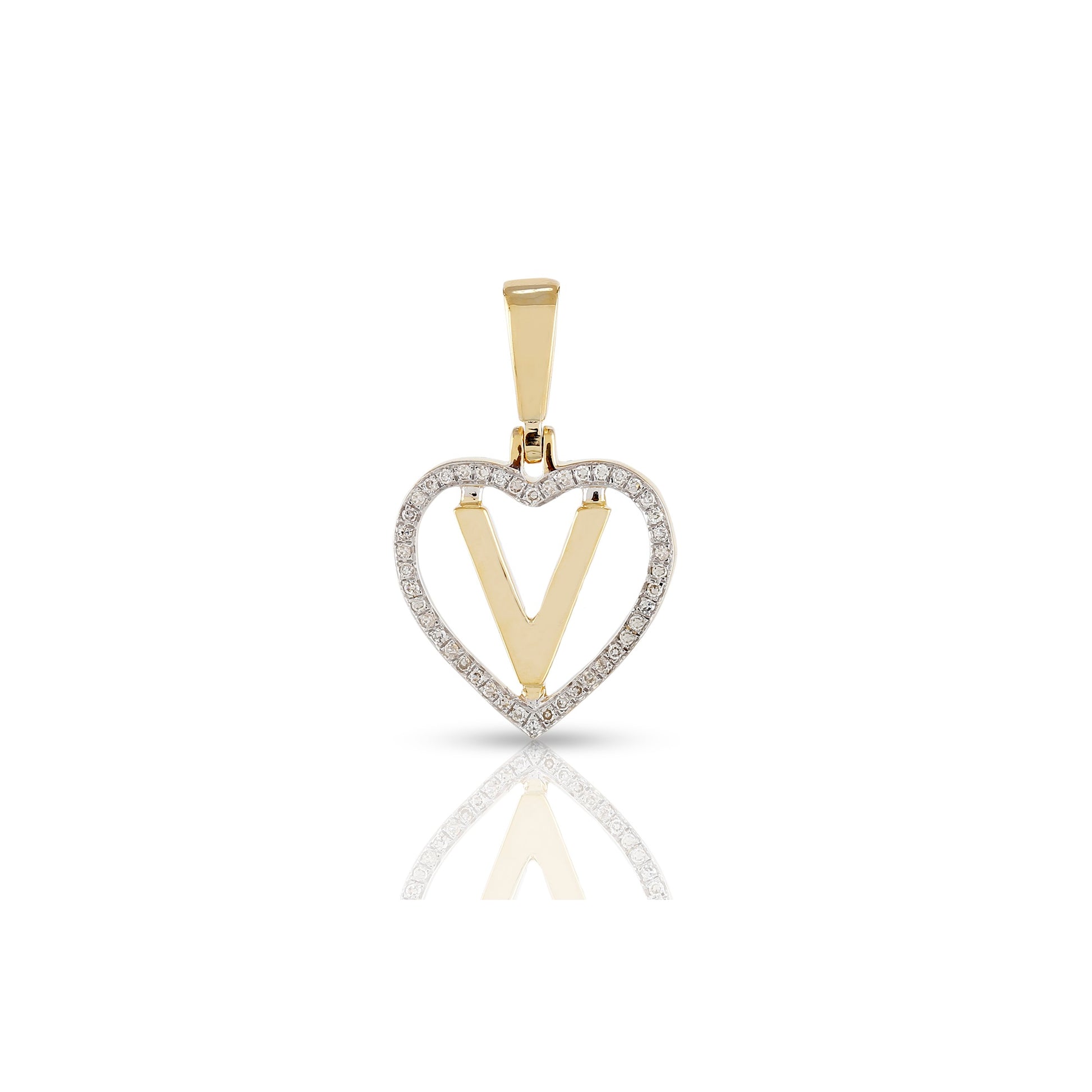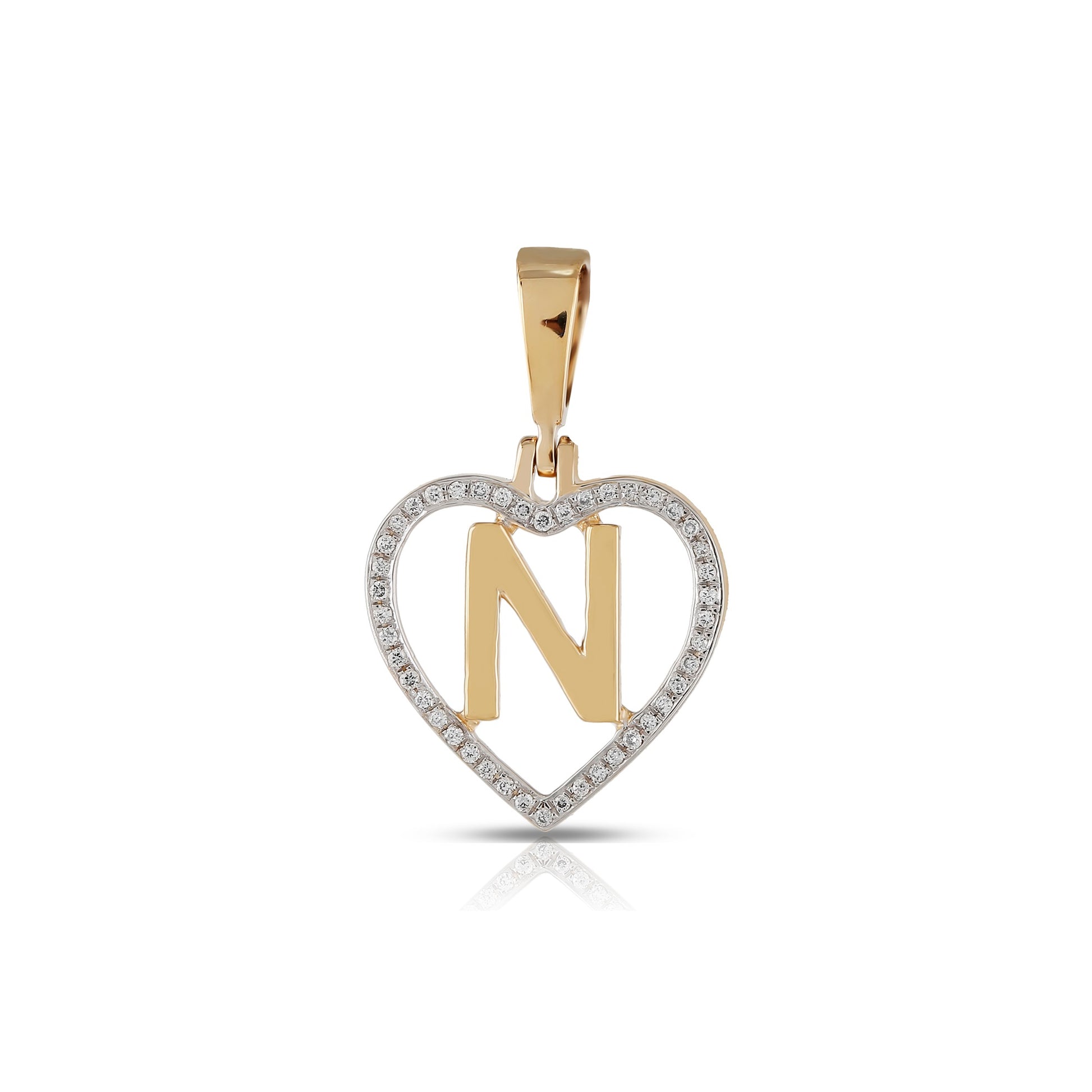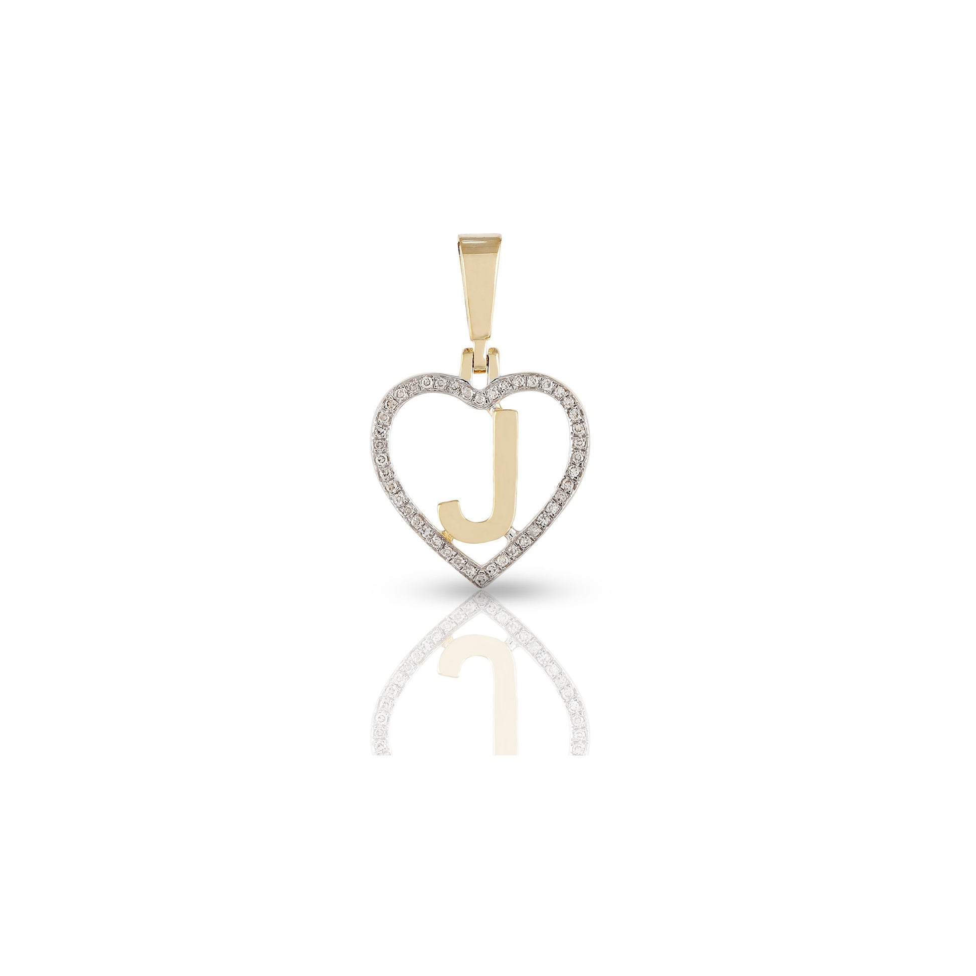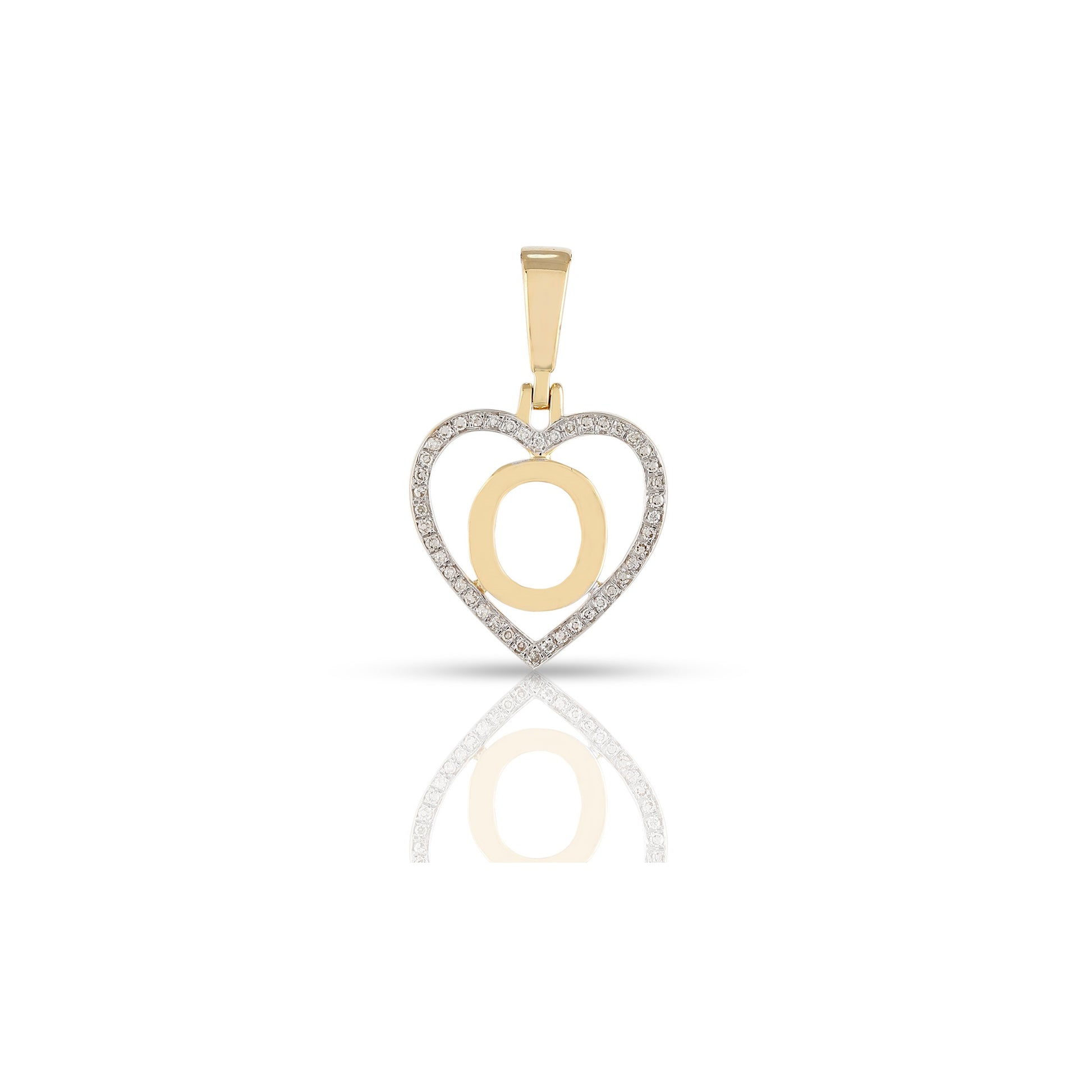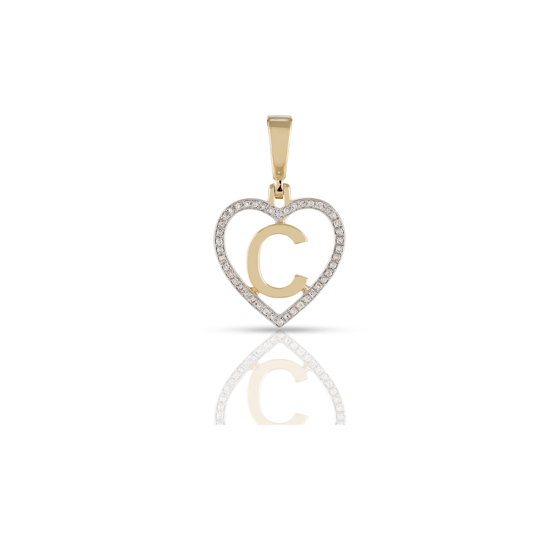Yellow Gold White Round Diamond Heart Initial Pendant