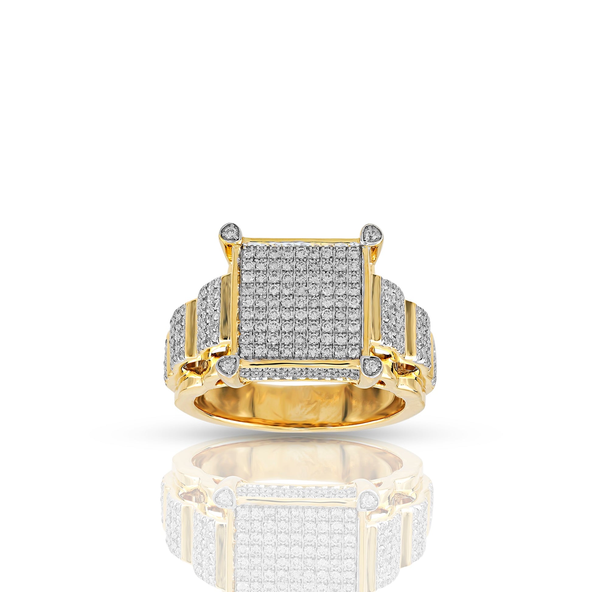 Choose this ring if you want a clean square look with serious sparkle. The pavé-set diamond face gives a strong “iced-out” effect, while the shoulder detailing adds depth and a premium finish—perfect for gifting or leveling up your daily style.