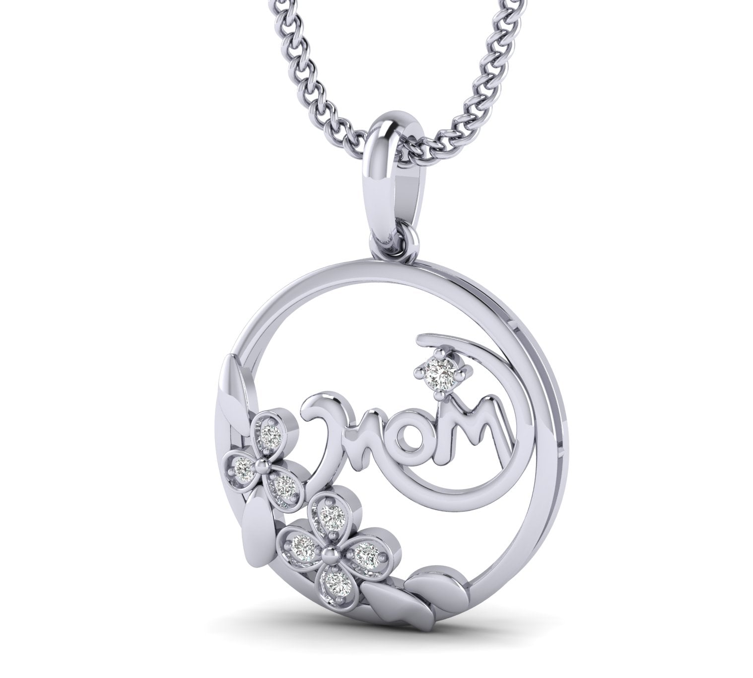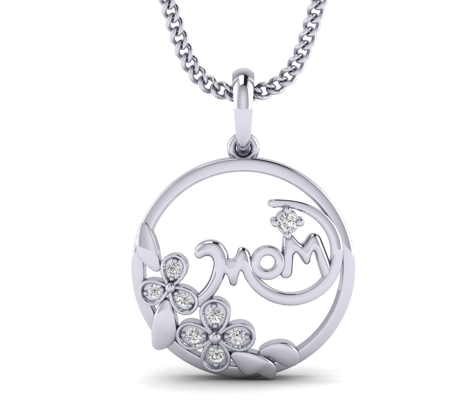 Mother's Day Jewelry Gifts White Natural Diamond Mom Pendant Necklace by Truth Jewel