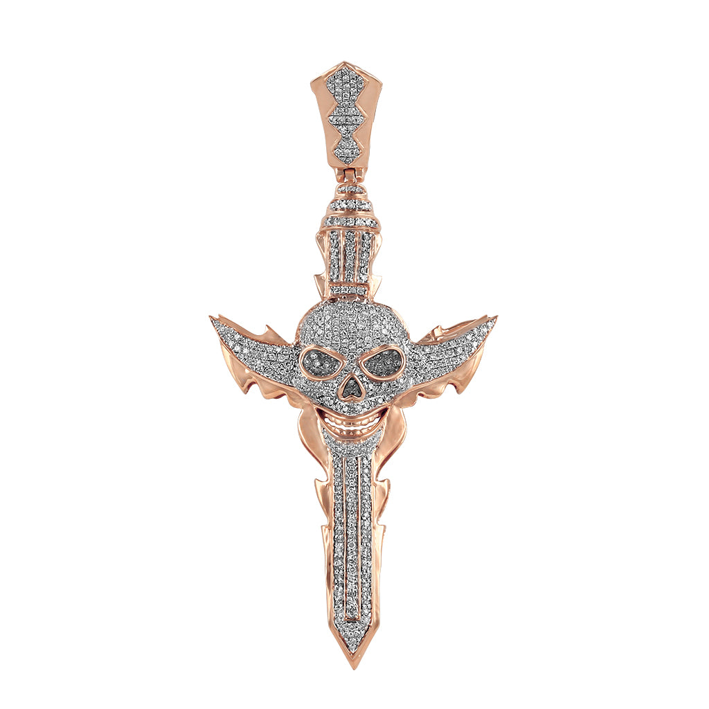 Rose Gold Round Diamond Skull Cross Pendant