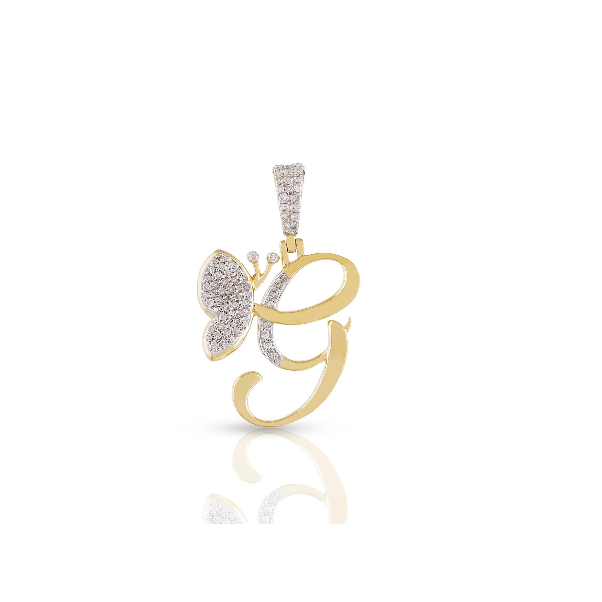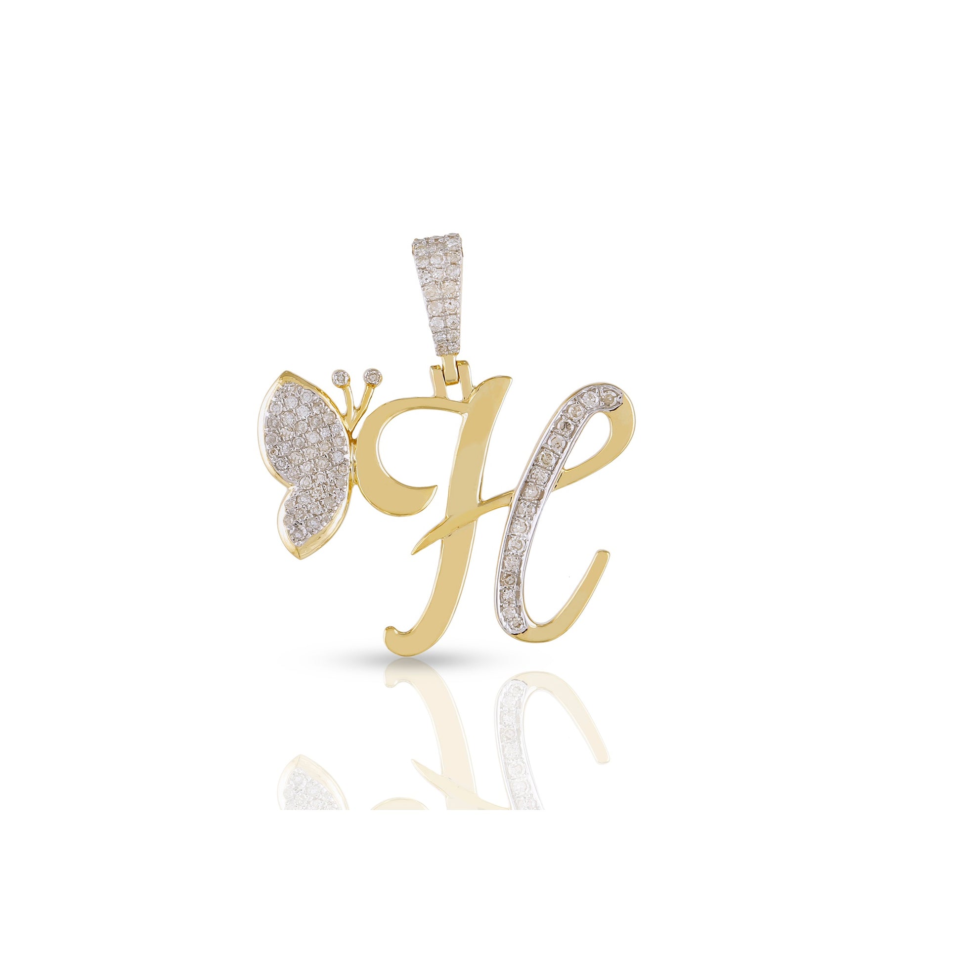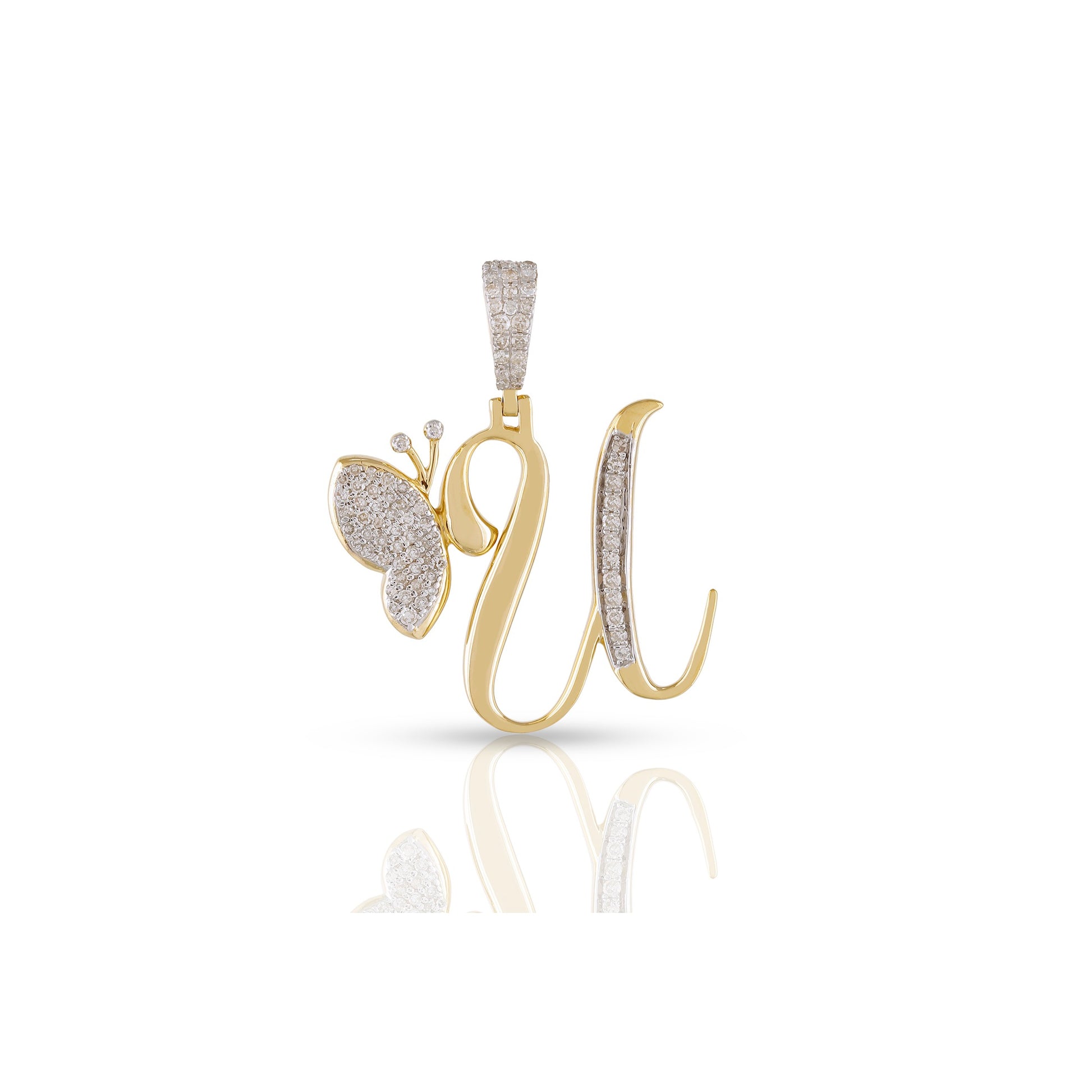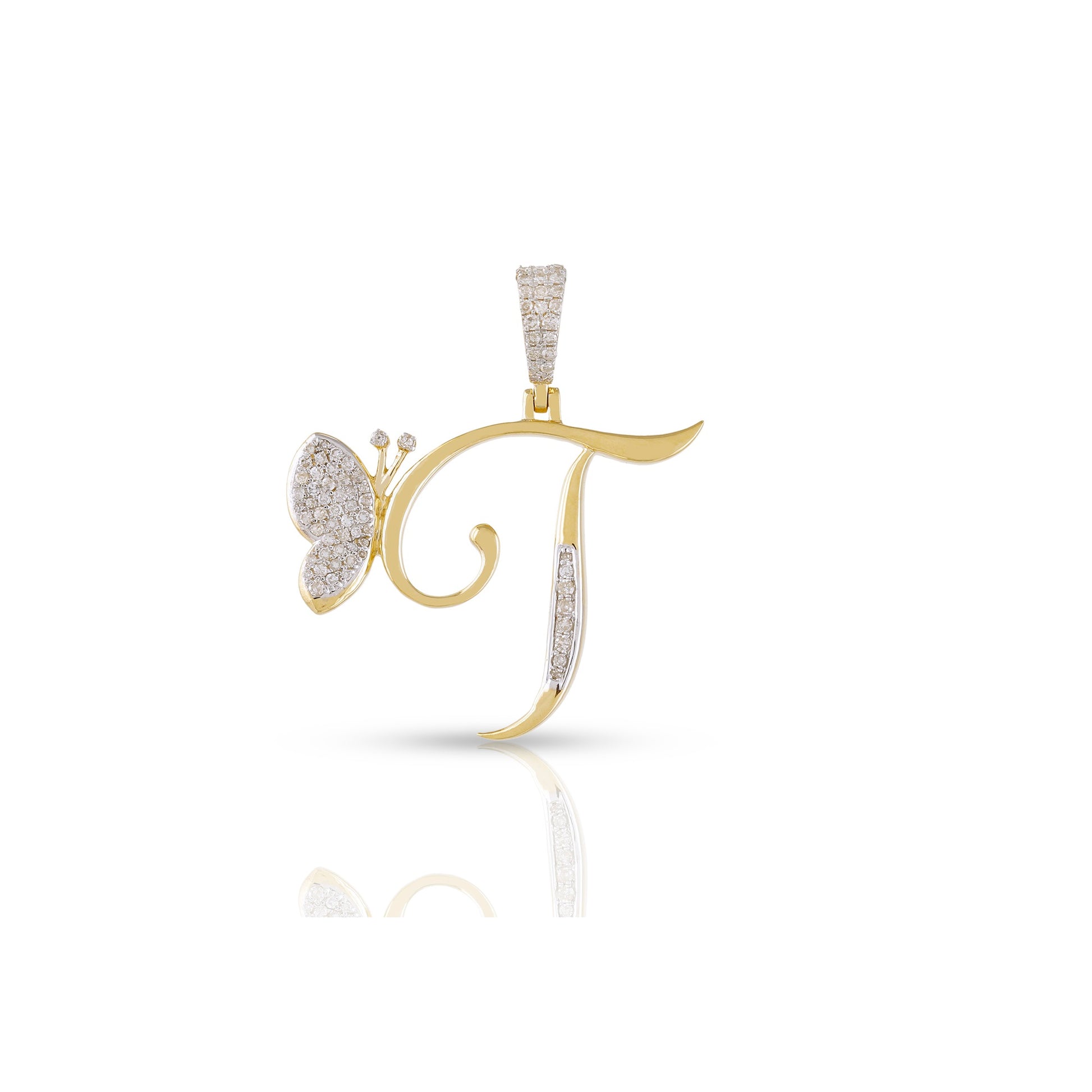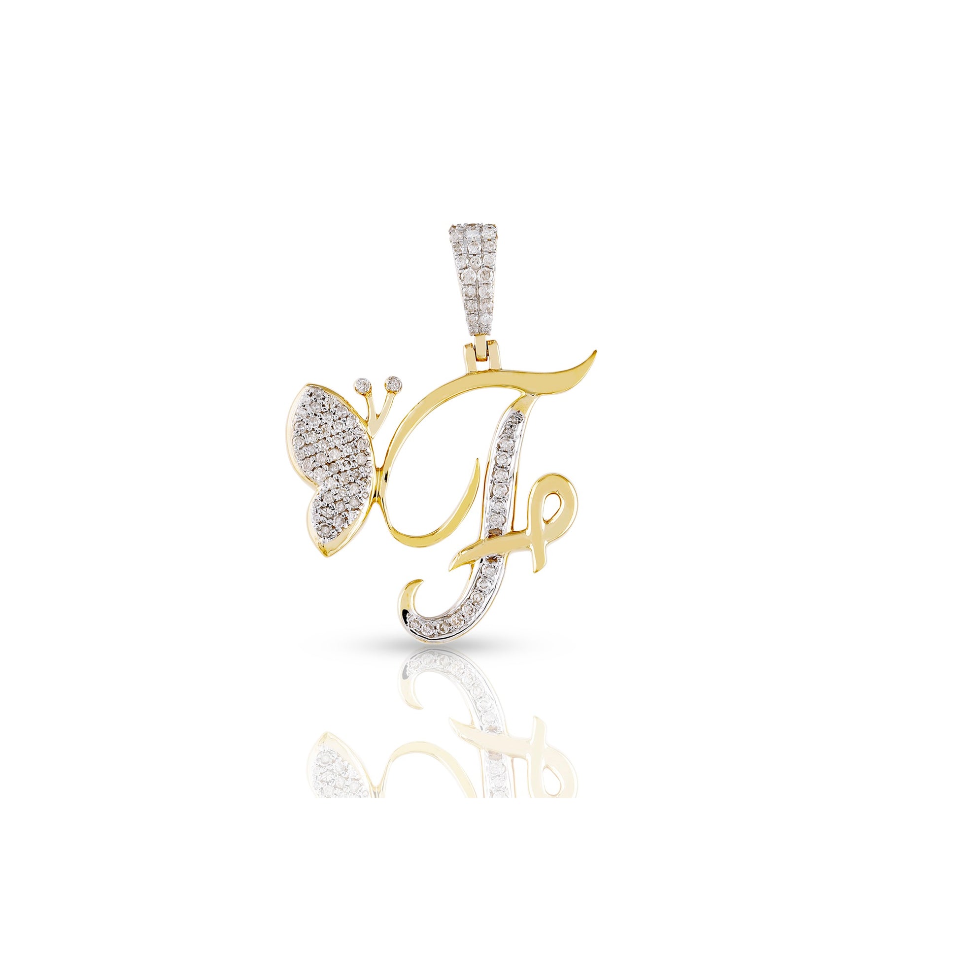 Embrace individuality and elegance with the yellow gold A-Z Butterfly Initial Letter Pendant by Truth Jewel. Crafted with precision, this pendant features a round diamond with VS-SI clarity and G-H color, set in high-quality 10k yellow gold. Each letter of the alphabet is adorned with sparkling diamonds, making it a personalized statement piece that captures both sophistication and charm.