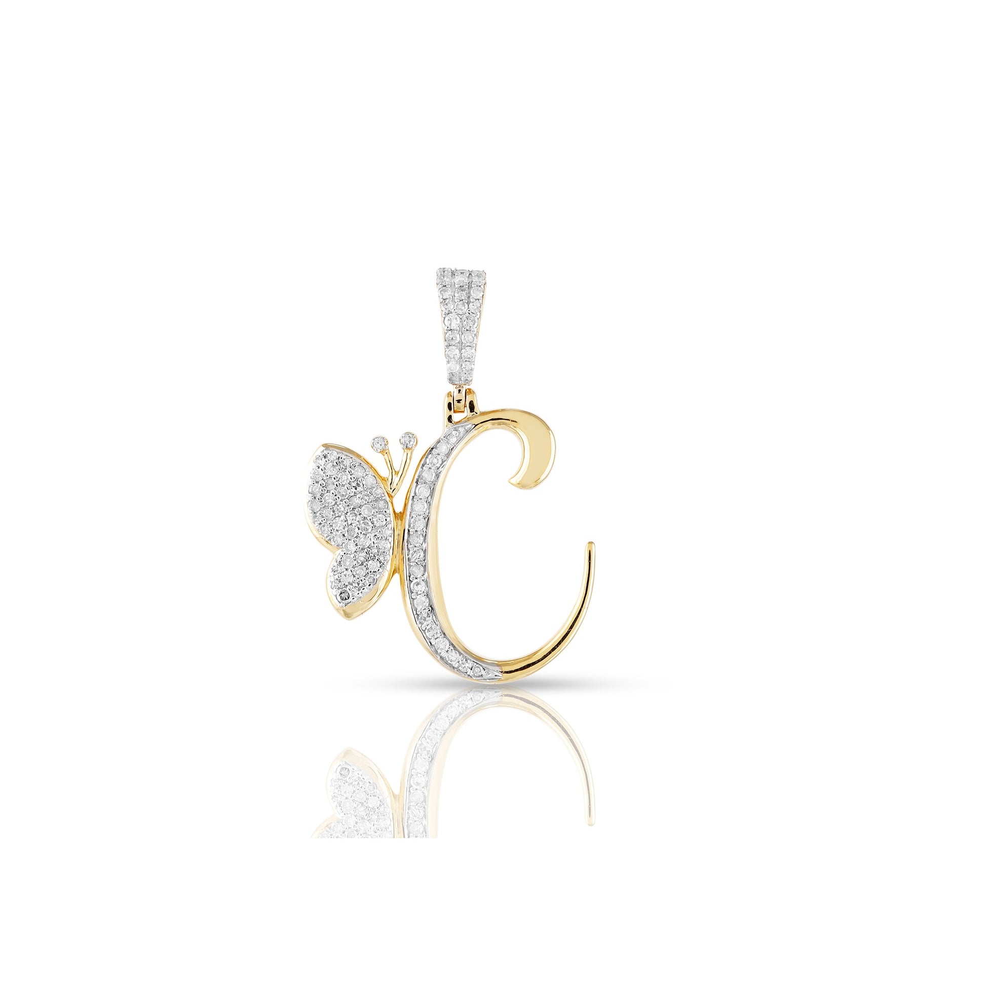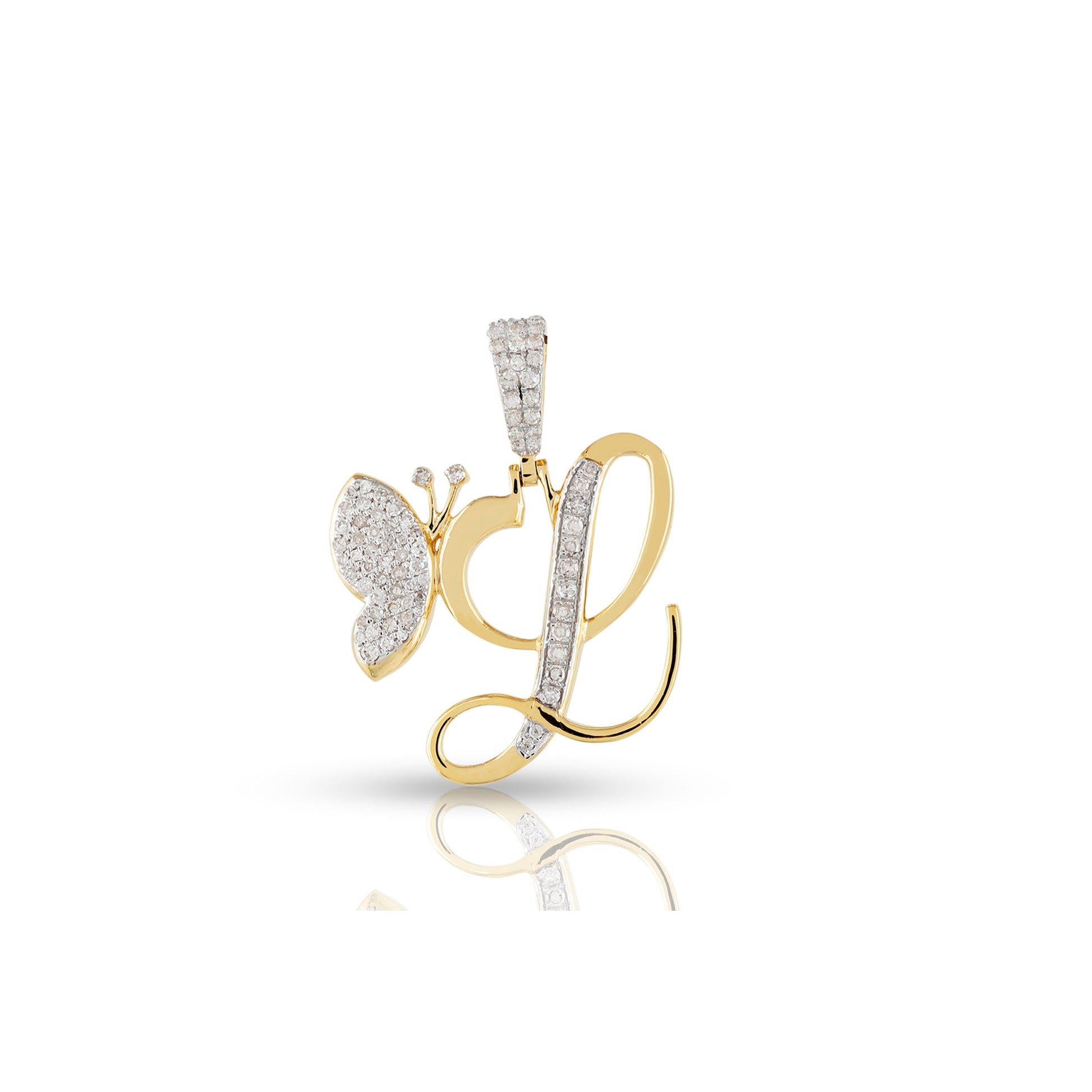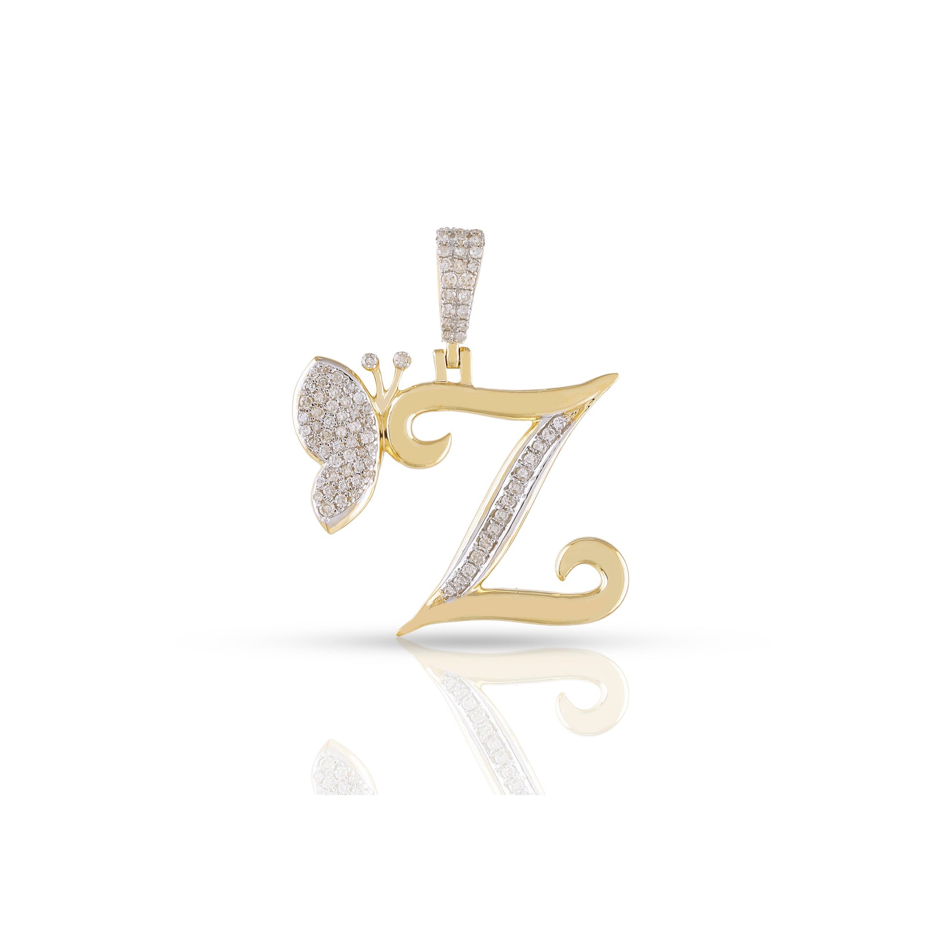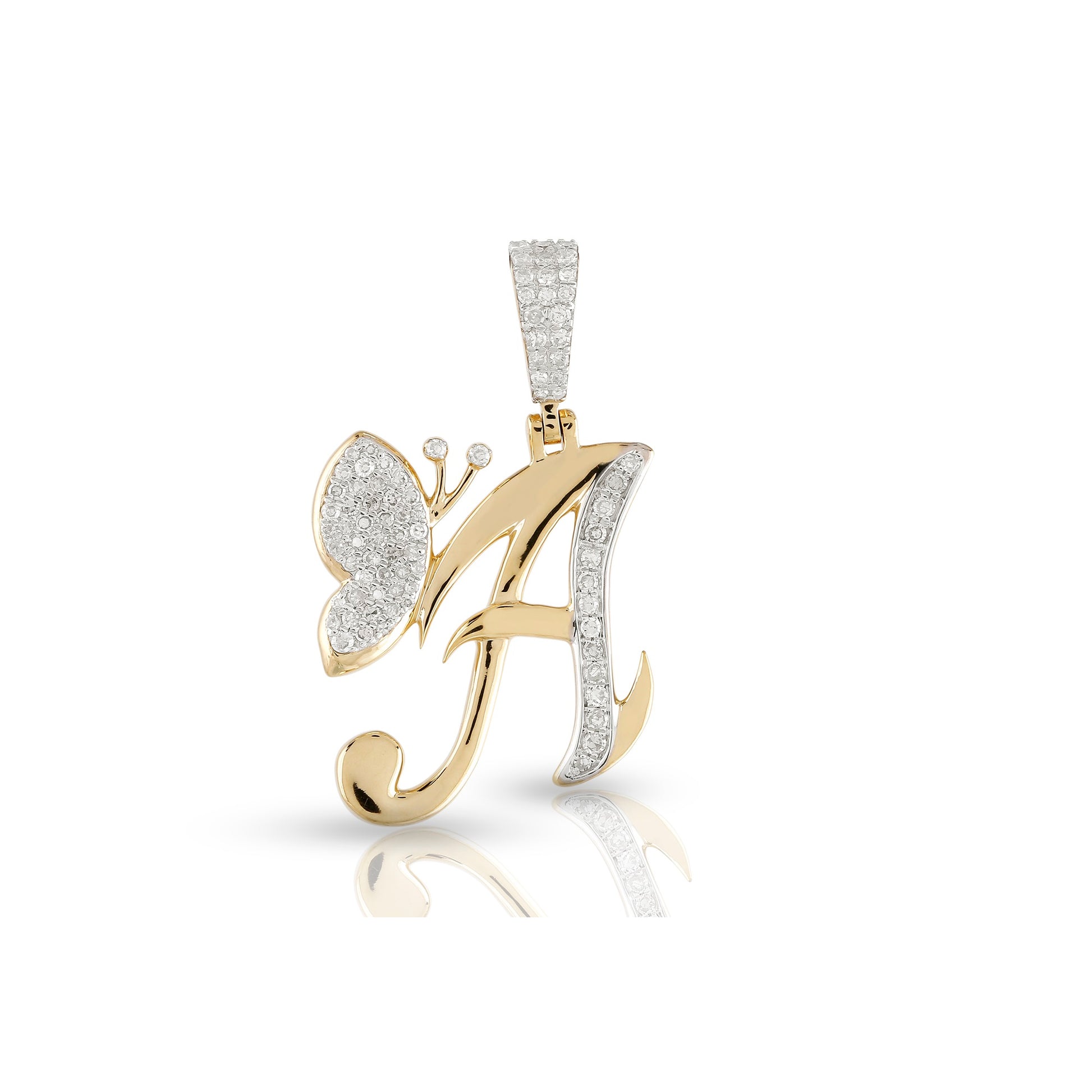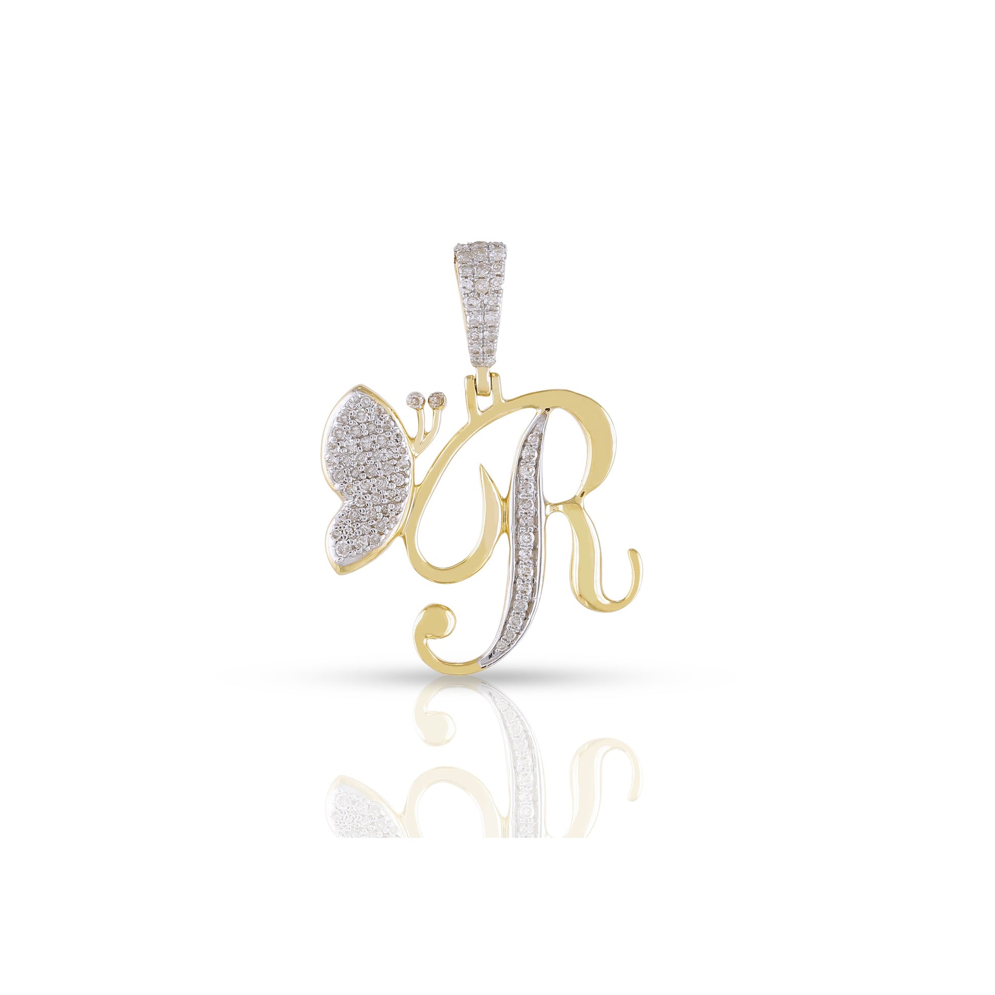 Embrace individuality and elegance with the yellow gold A-Z Butterfly Initial Letter Pendant by Truth Jewel. Crafted with precision, this pendant features a round diamond with VS-SI clarity and G-H color, set in high-quality 10k yellow gold. Each letter of the alphabet is adorned with sparkling diamonds, making it a personalized statement piece that captures both sophistication and charm.
