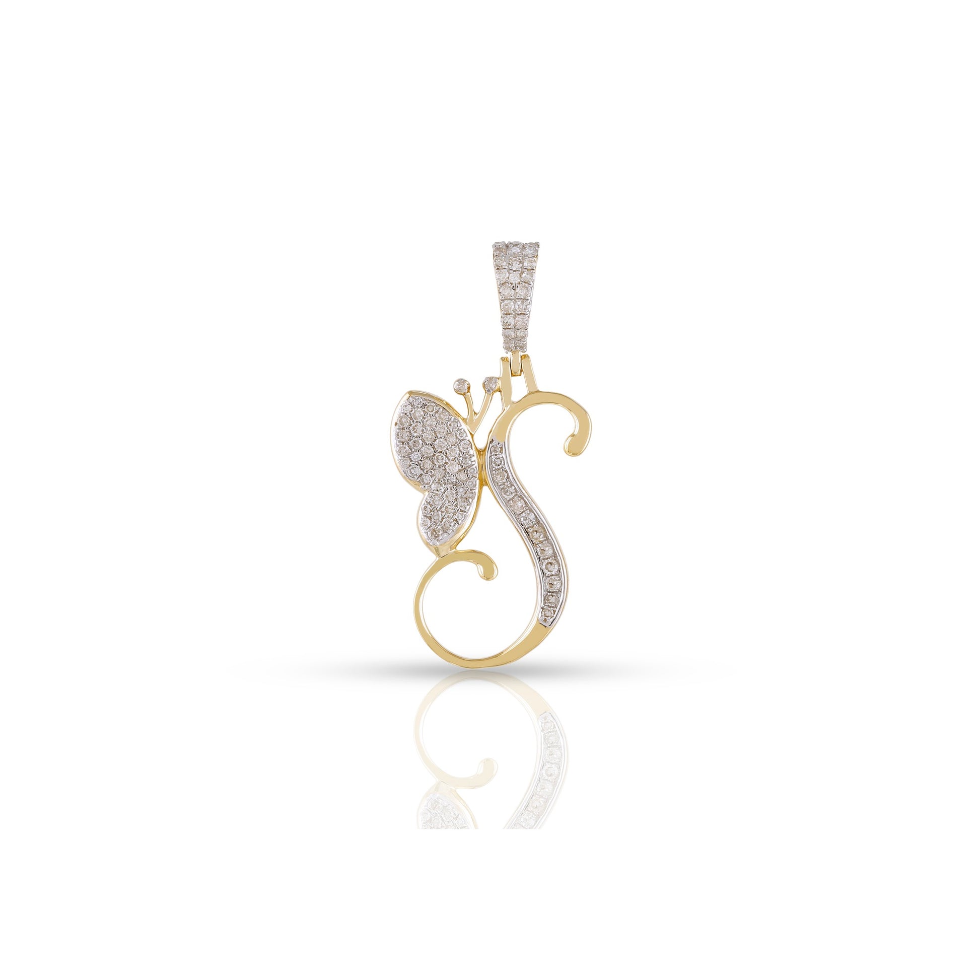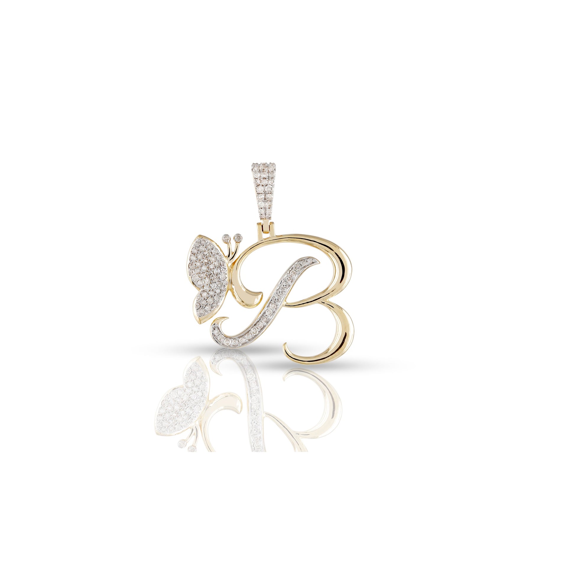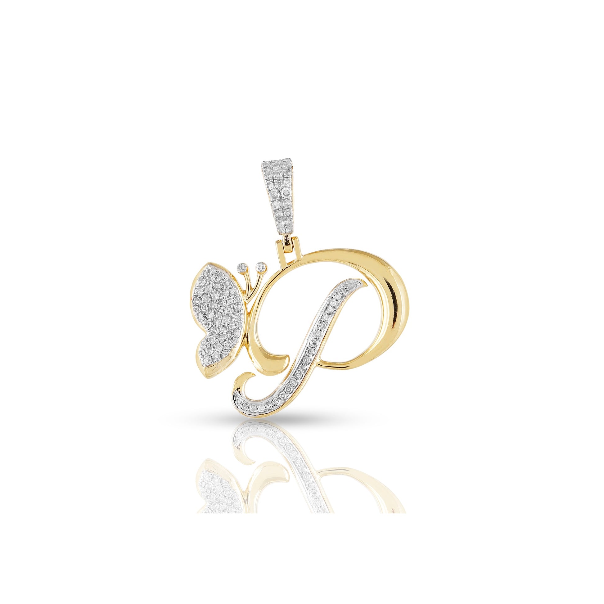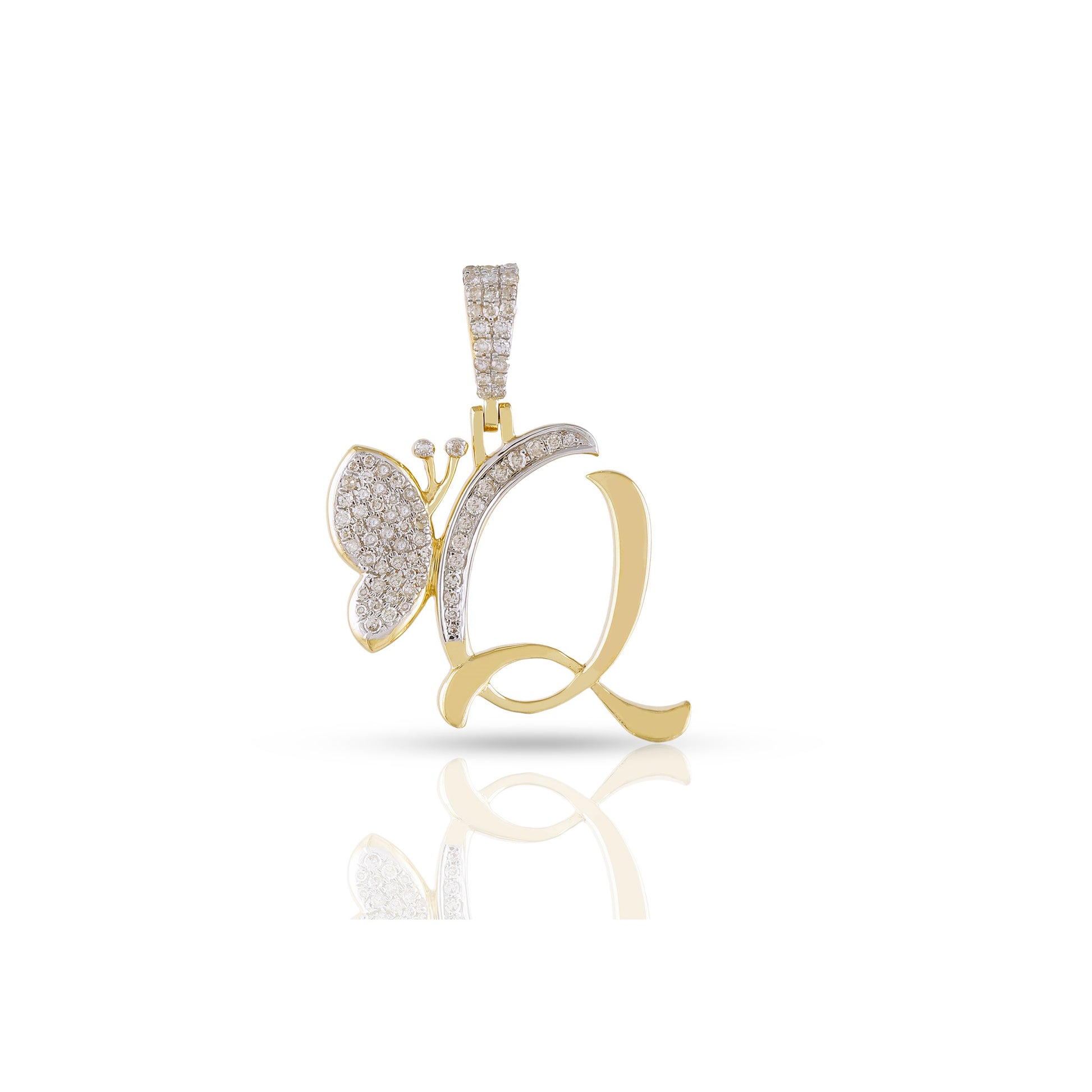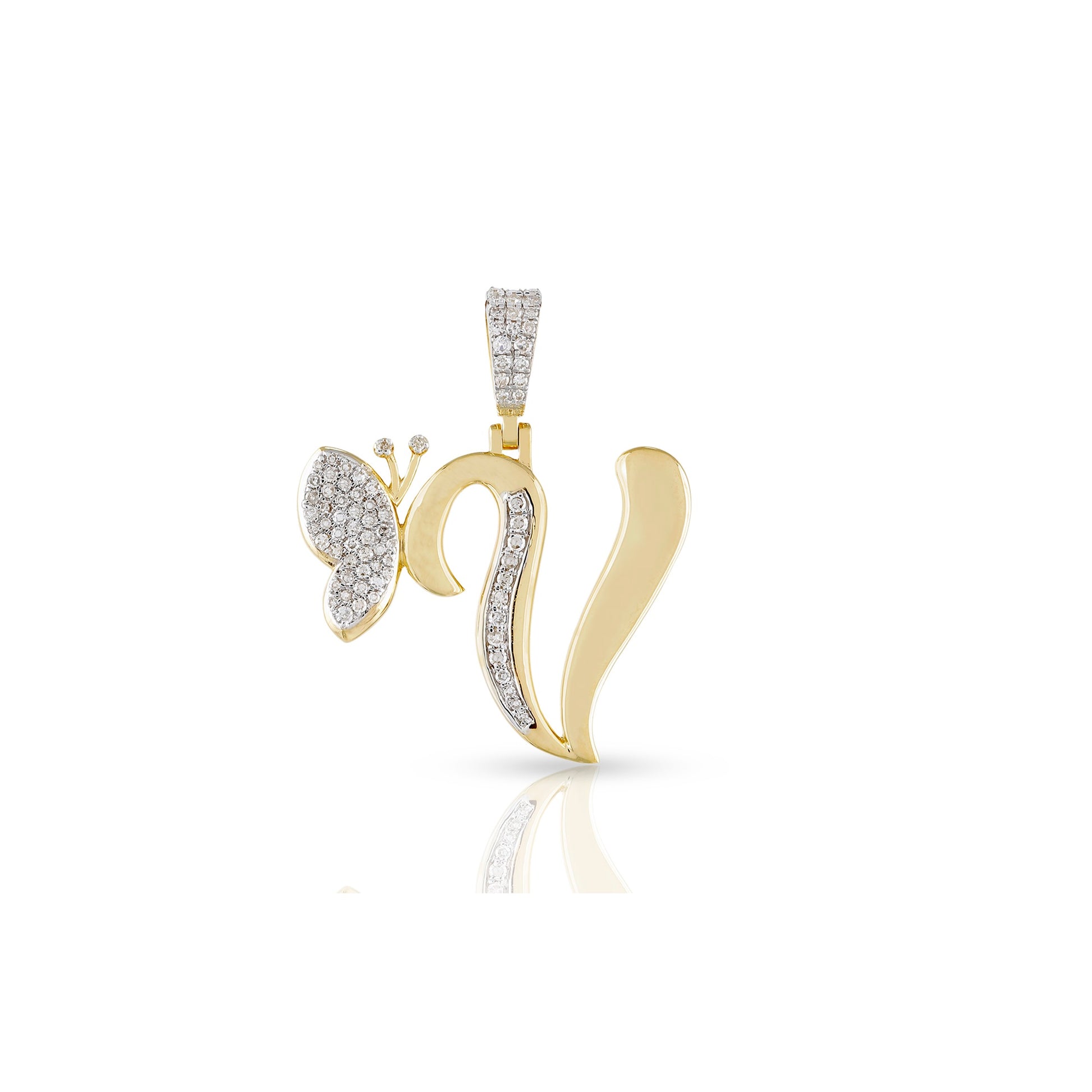 Embrace individuality and elegance with the yellow gold A-Z Butterfly Initial Letter Pendant by Truth Jewel. Crafted with precision, this pendant features a round diamond with VS-SI clarity and G-H color, set in high-quality 10k yellow gold. Each letter of the alphabet is adorned with sparkling diamonds, making it a personalized statement piece that captures both sophistication and charm.