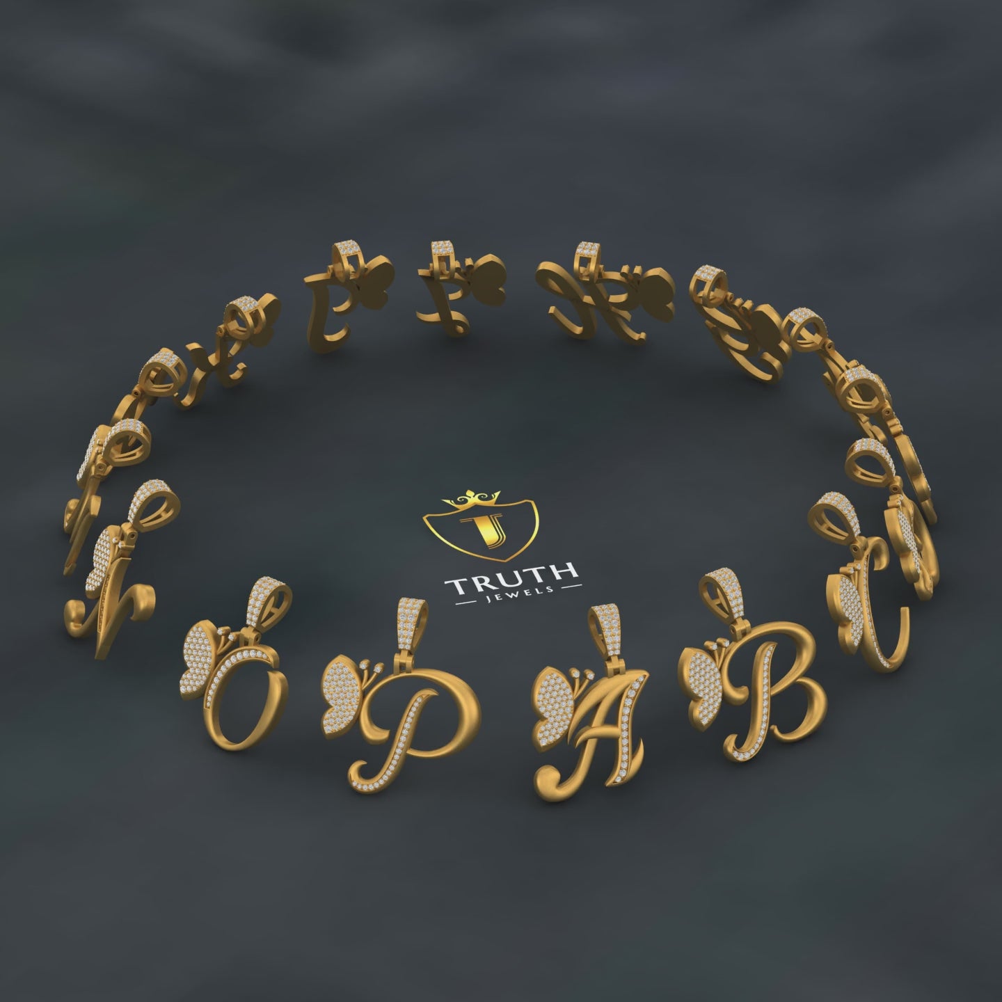 Yellow Gold A-Z Butterfly Initial Letter Pendant by Truth Jewel