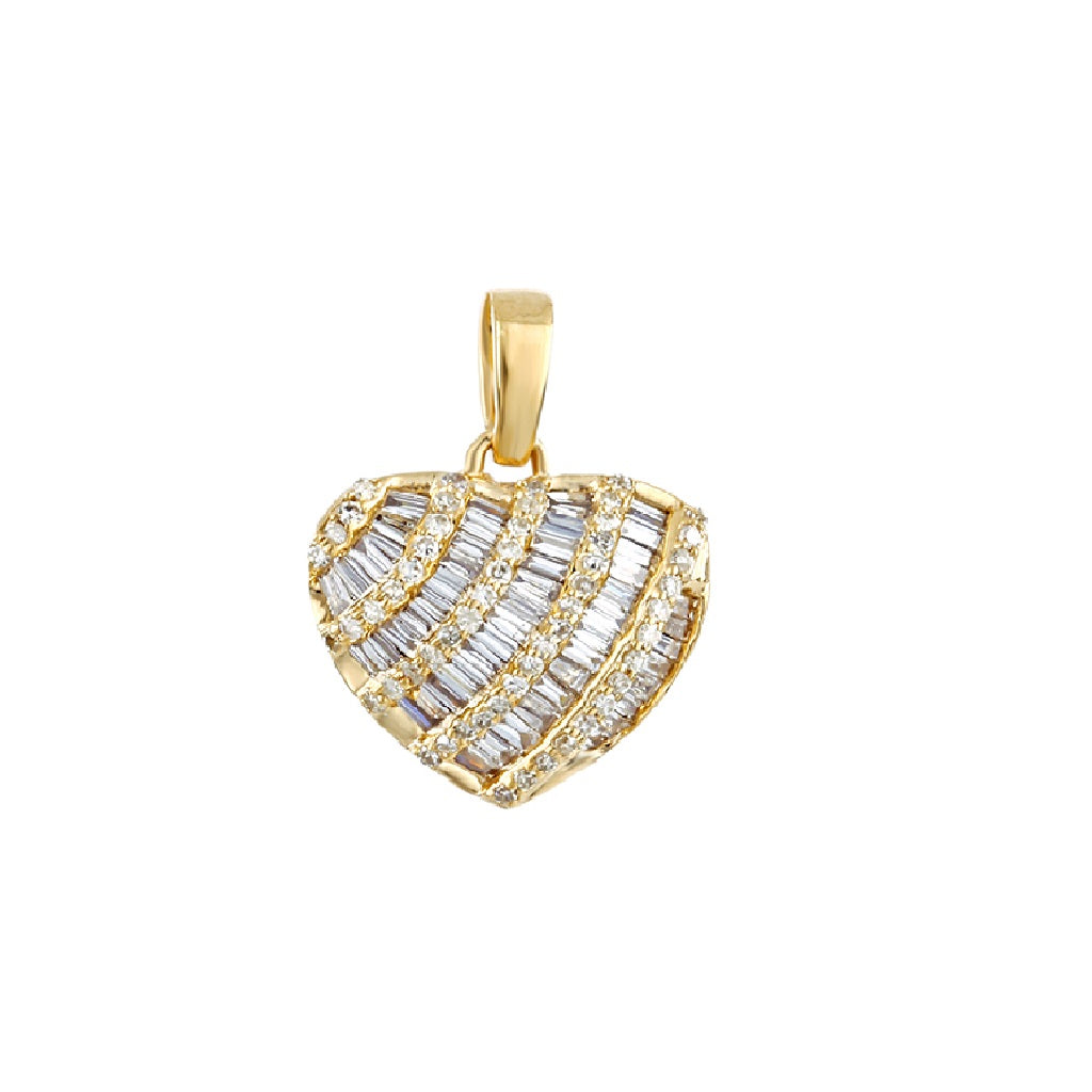 Add a touch of luxury to your day with our Yellow Gold Heart Pendant, adorned with dazzling 0.38ct round and baguette diamonds. Perfectly designed for those who seek beauty and sophistication in every detail, this pendant is more than just a piece of jewelry—it’s a celebration of love and brilliance.