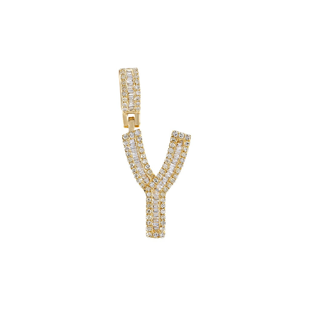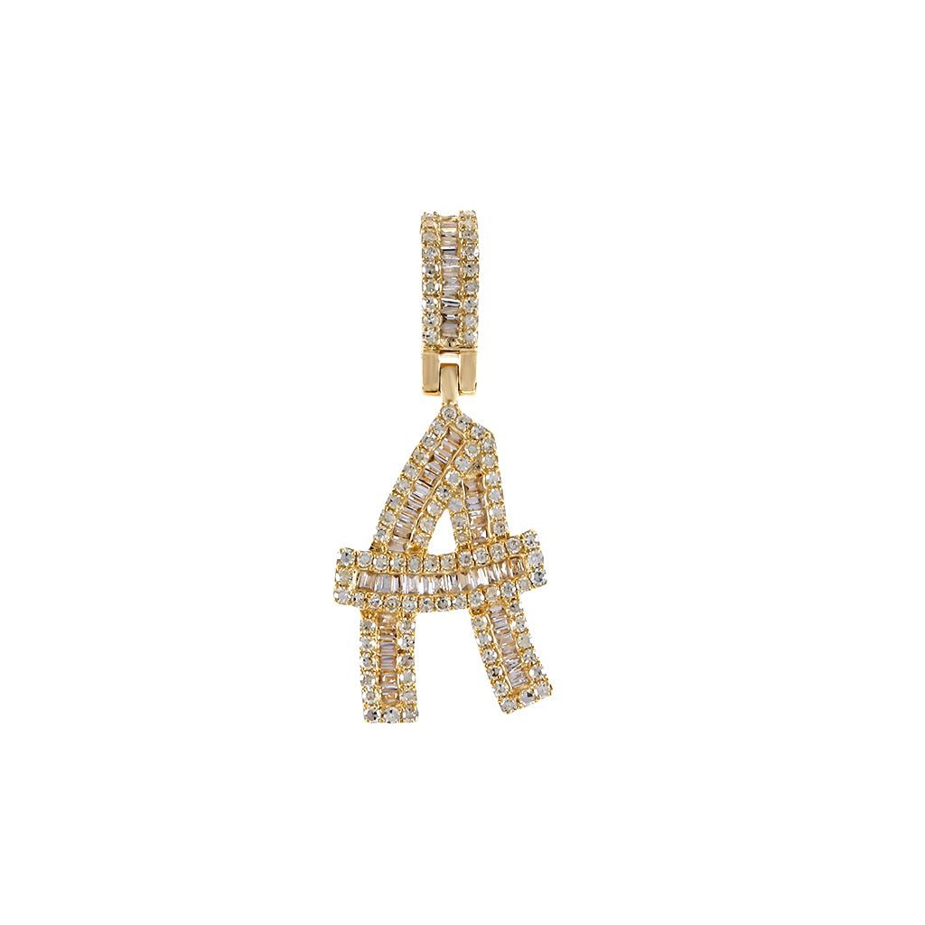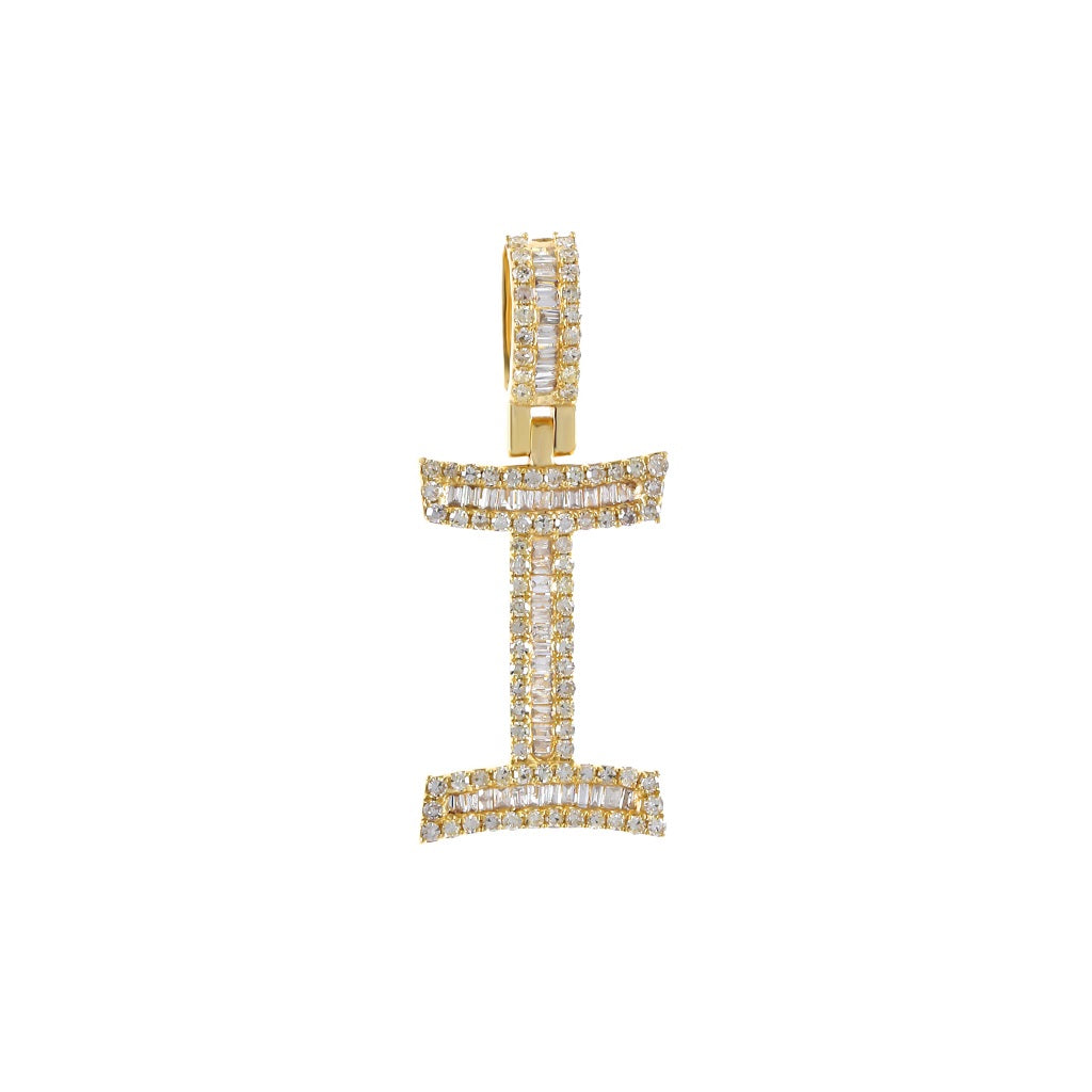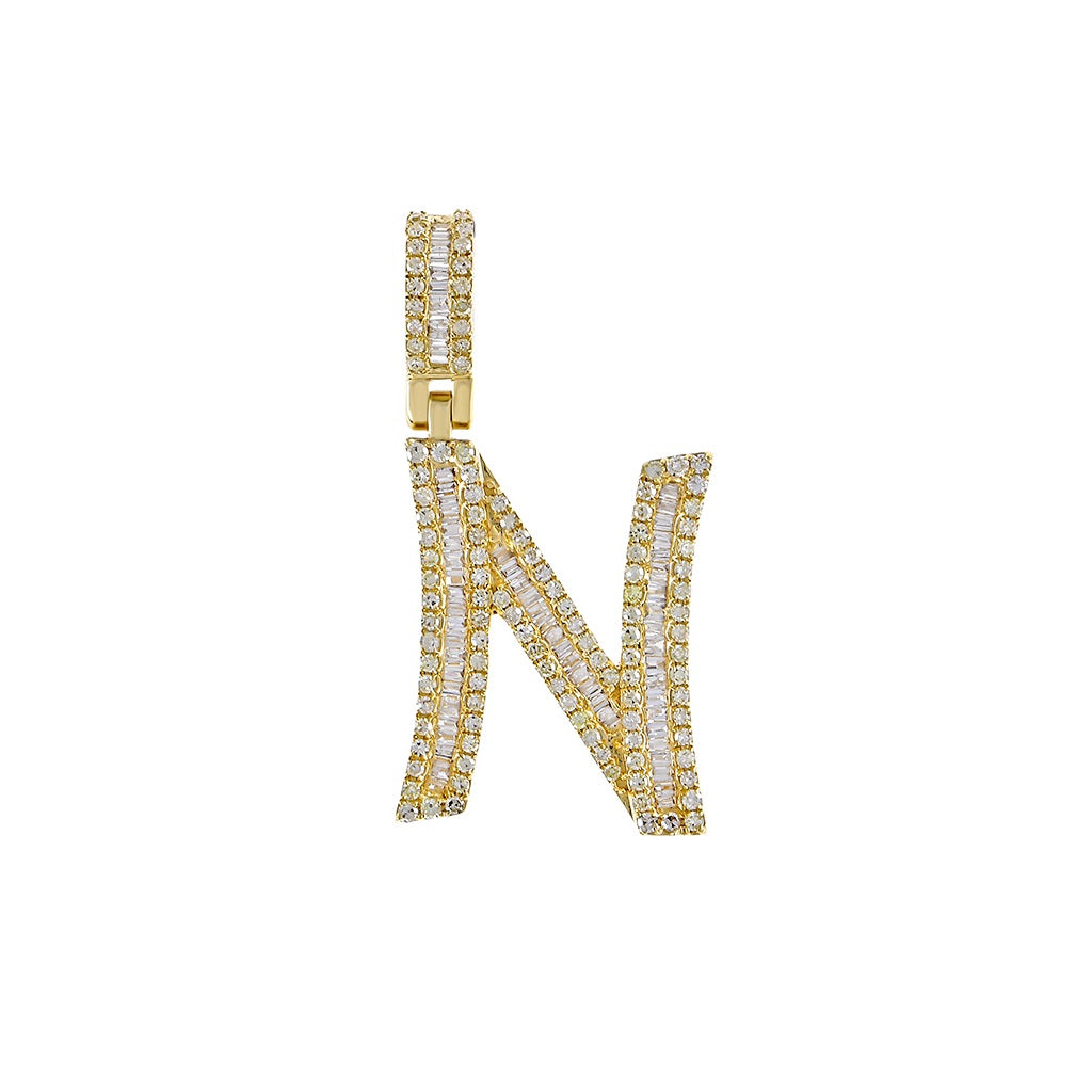 Yellow Gold Baguette and Round Diamond Initial Letter A to Z Pendant