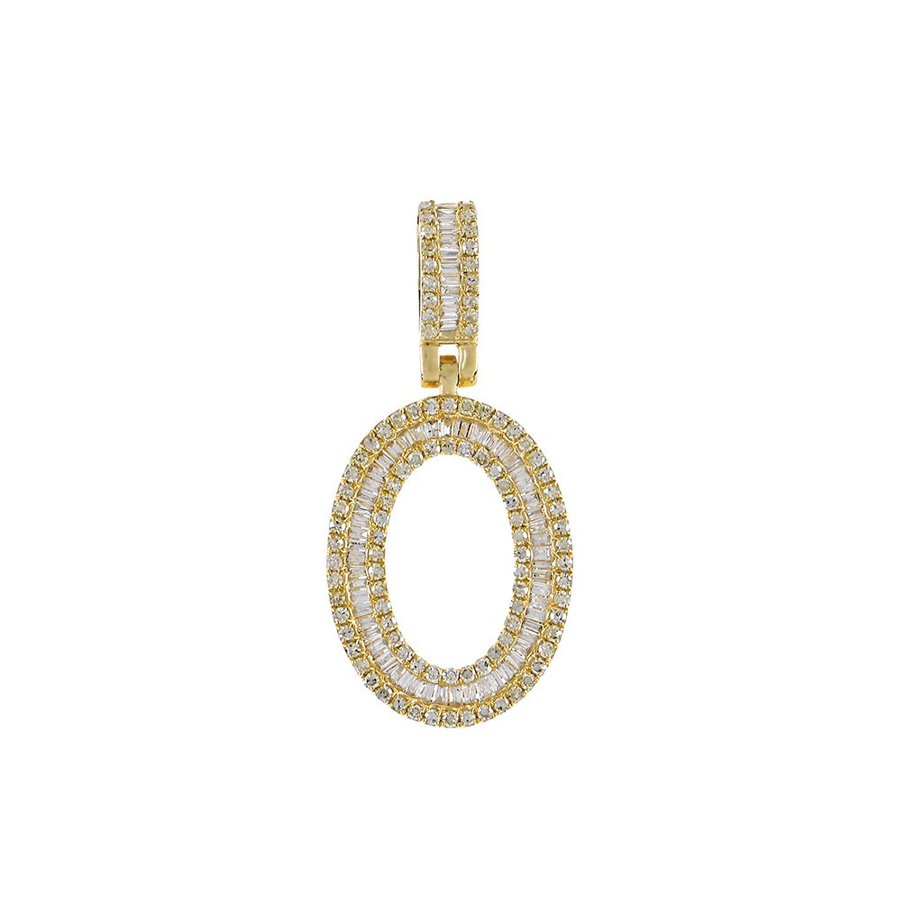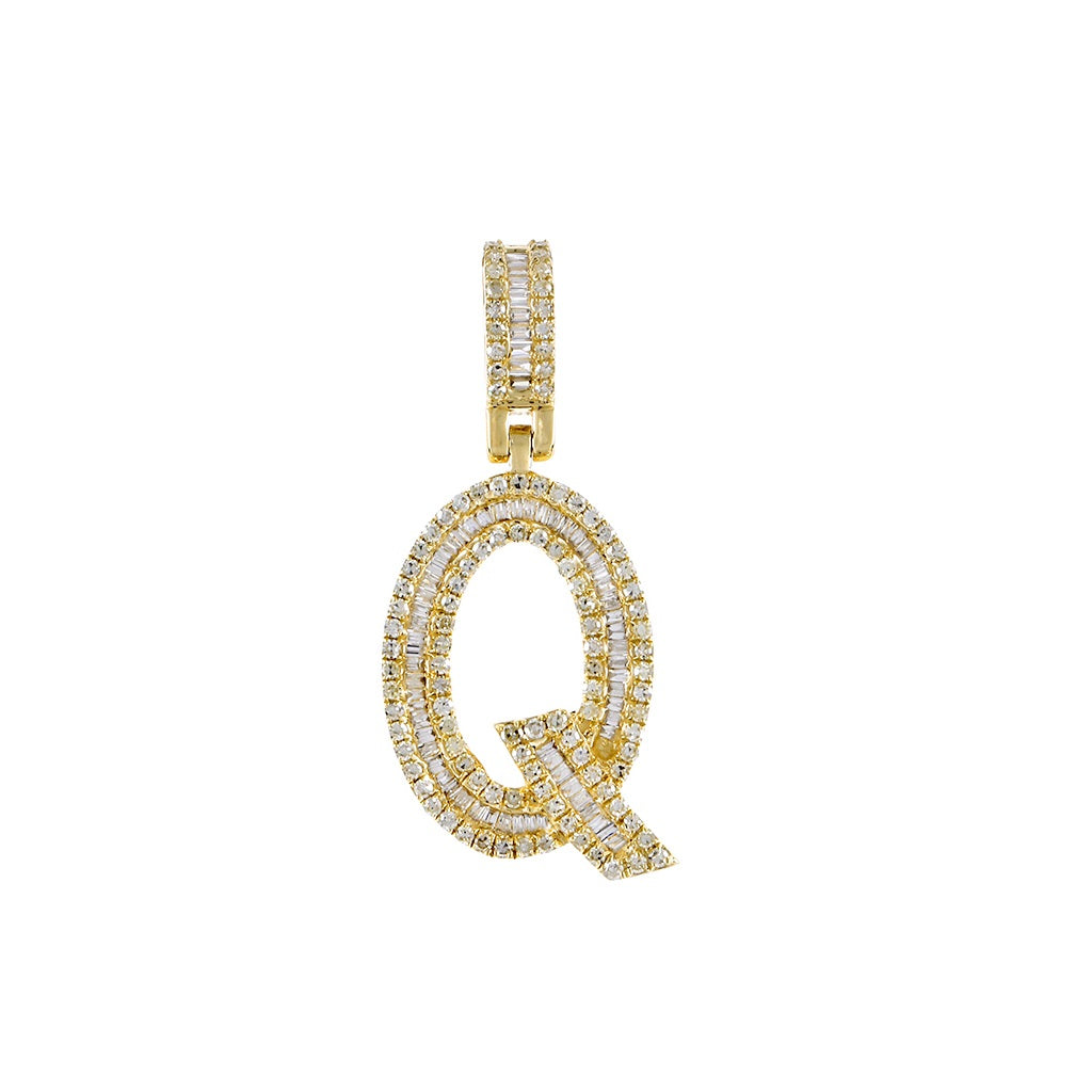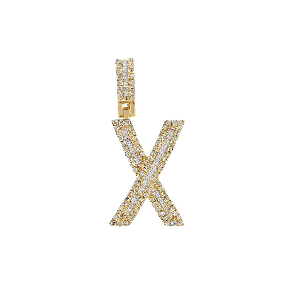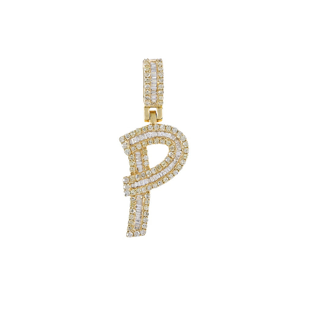 Yellow Gold Baguette and Round Diamond Initial Letter A to Z Pendant