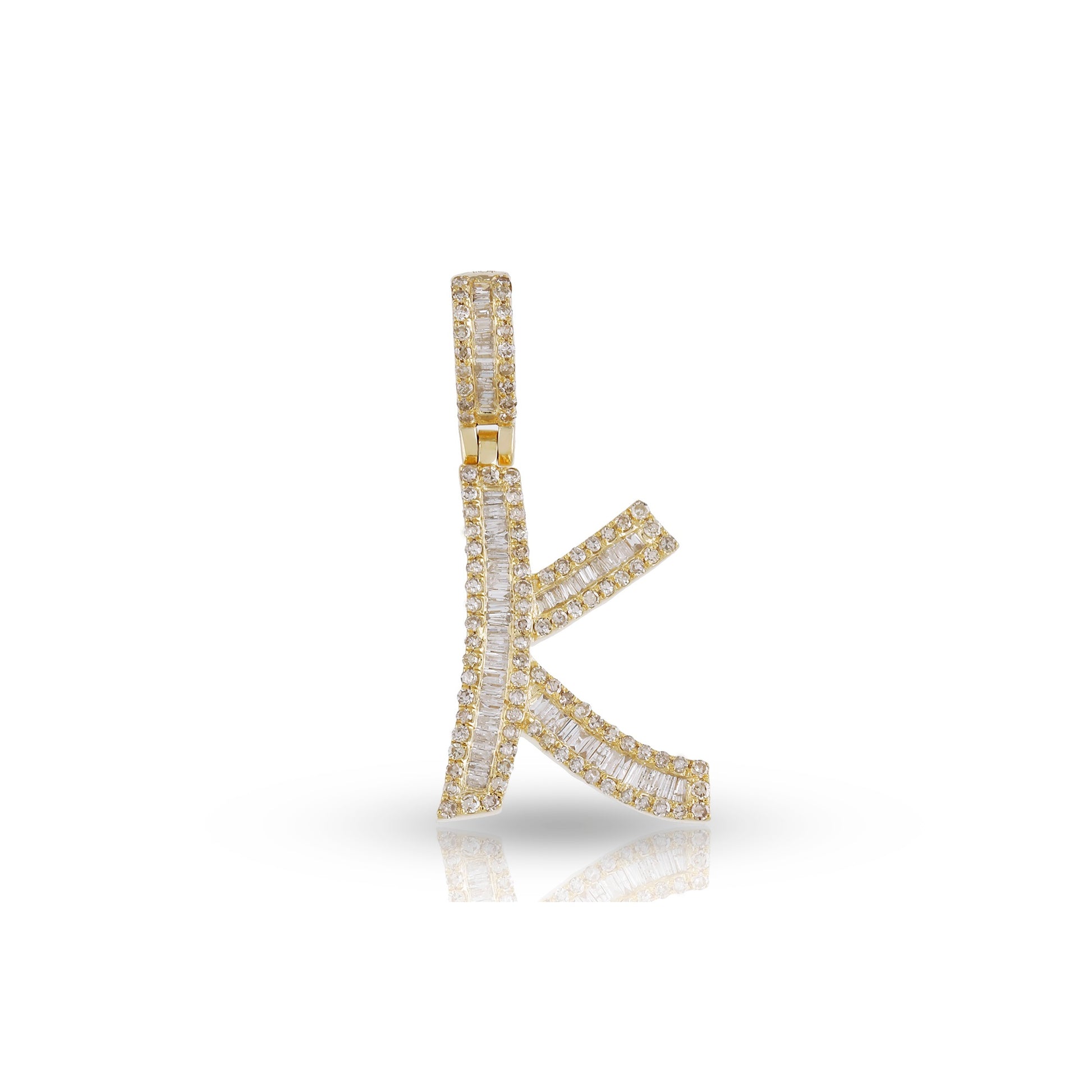 The Yellow Gold Baguette and Round Diamond Initial Letter Pendant offers a blend of elegance and personalization that is unmatched. Each letter, from A to Z, is meticulously crafted using both baguette and round diamonds, featuring VS clarity and G-H color for a dazzling effect. The pendant is available in luxurious 10k to 14k yellow gold or 925 silver, allowing you to choose the metal that best complements your style.