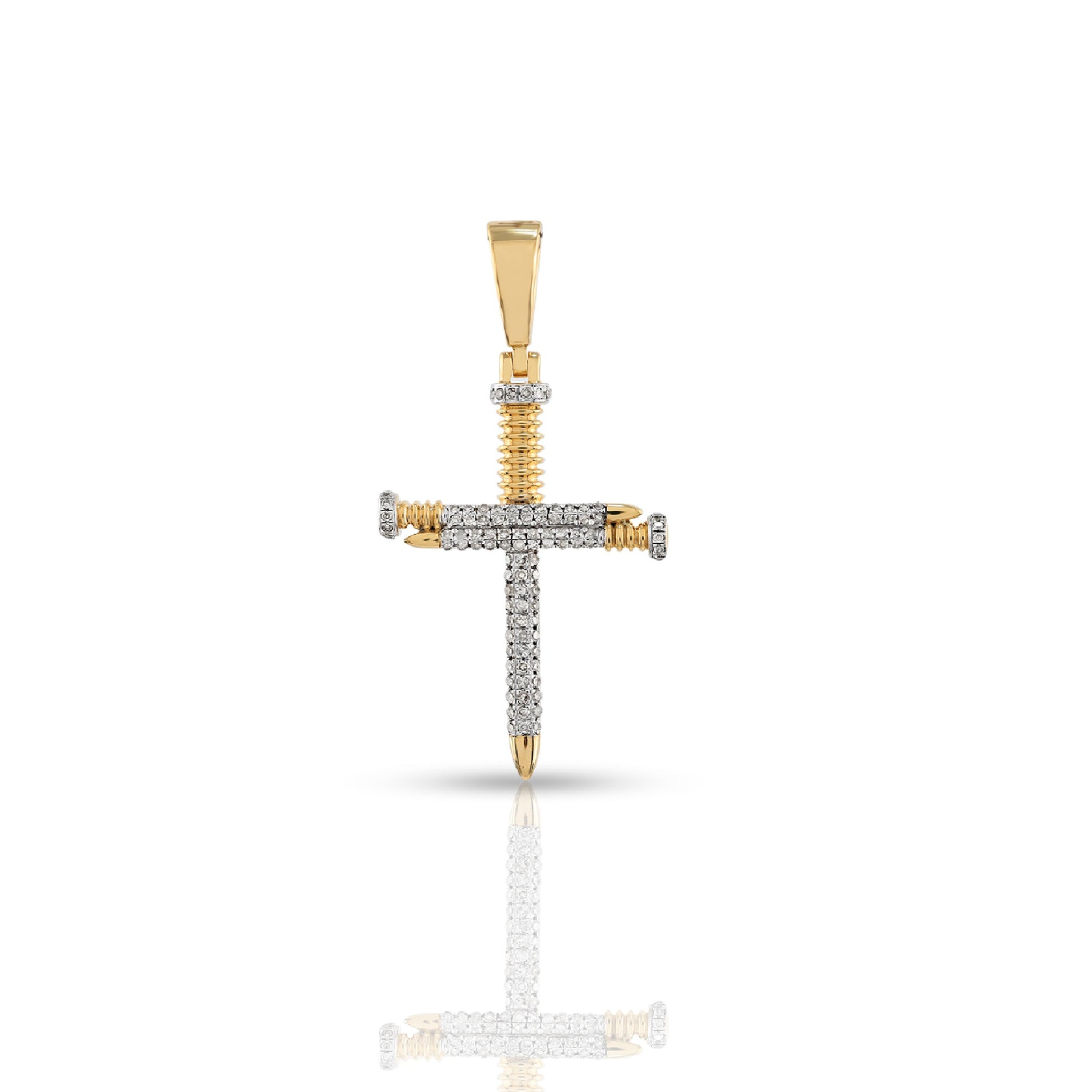 Yellow Gold Diamond Nail Cross Pendant By Truth Jewel